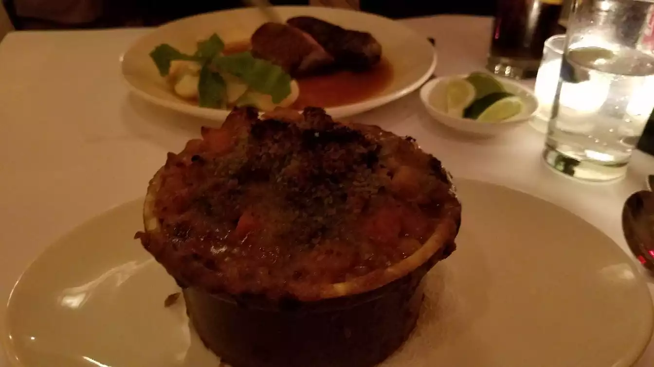 I wanted to go to Cafe Luxembourg because I missed their superb French Onion Soup. I have had it there many times and it is far better than any I have had in other cities and on multiple cruises. In fact I actually dislike onions but for some reason I really like onion soup. Go figure .So for me this was all i needed to feel fulfilled. My wife also had the onion soup and came out with the statement (which I was about to say) that no one else comes close! She had also ordered a steak dish and an appetizer but after the appetizer and the soup (and bread) had no room for her min course. Our guest had the mussels which he thought was good. Our waiter Jared was terrific. Personable and knowledgeable and quite efficient.