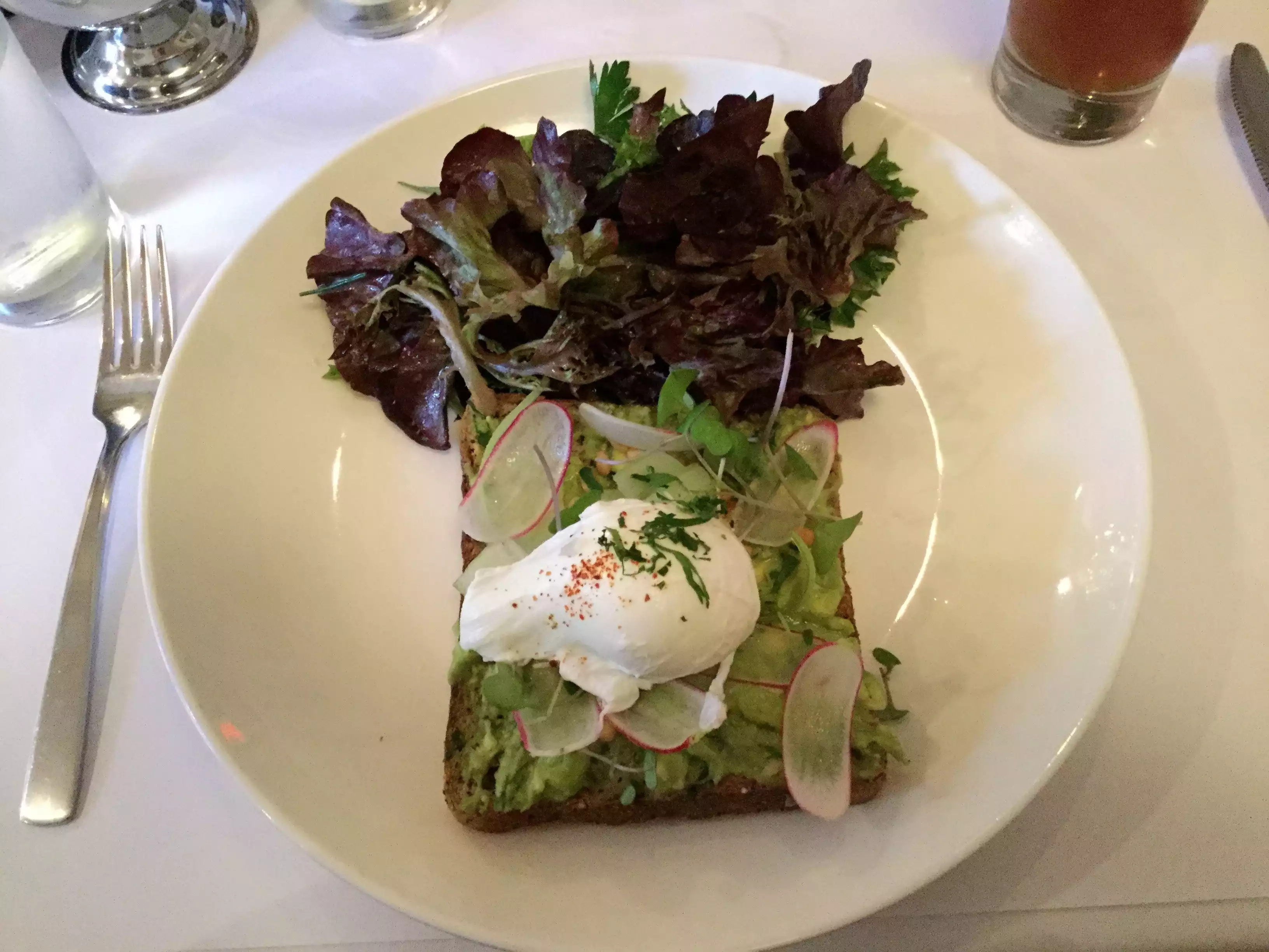 This is a very pleasant restaurant where you can actually converse in a normal voice. The setting is pleasant and the decibel volume stands in pleasant contreast to so many other restaurants on the upper west side. The staff was attentive and friendly but not overbearing. The food was o.k. but would not give it the rave review of the other reviewers. It is overpriced for what you get and that goes for the quality as well as the portion size. My husband ordered the avaocado toast and was given a very thin slice of bread on which there was a very small amount of avocado and bean spread. It looked more like an appetizer than a main course for brunch. The rest of our party enjoyed their choices but there were no raves. The coffee was good. Would return for the location and the pleasant setting.