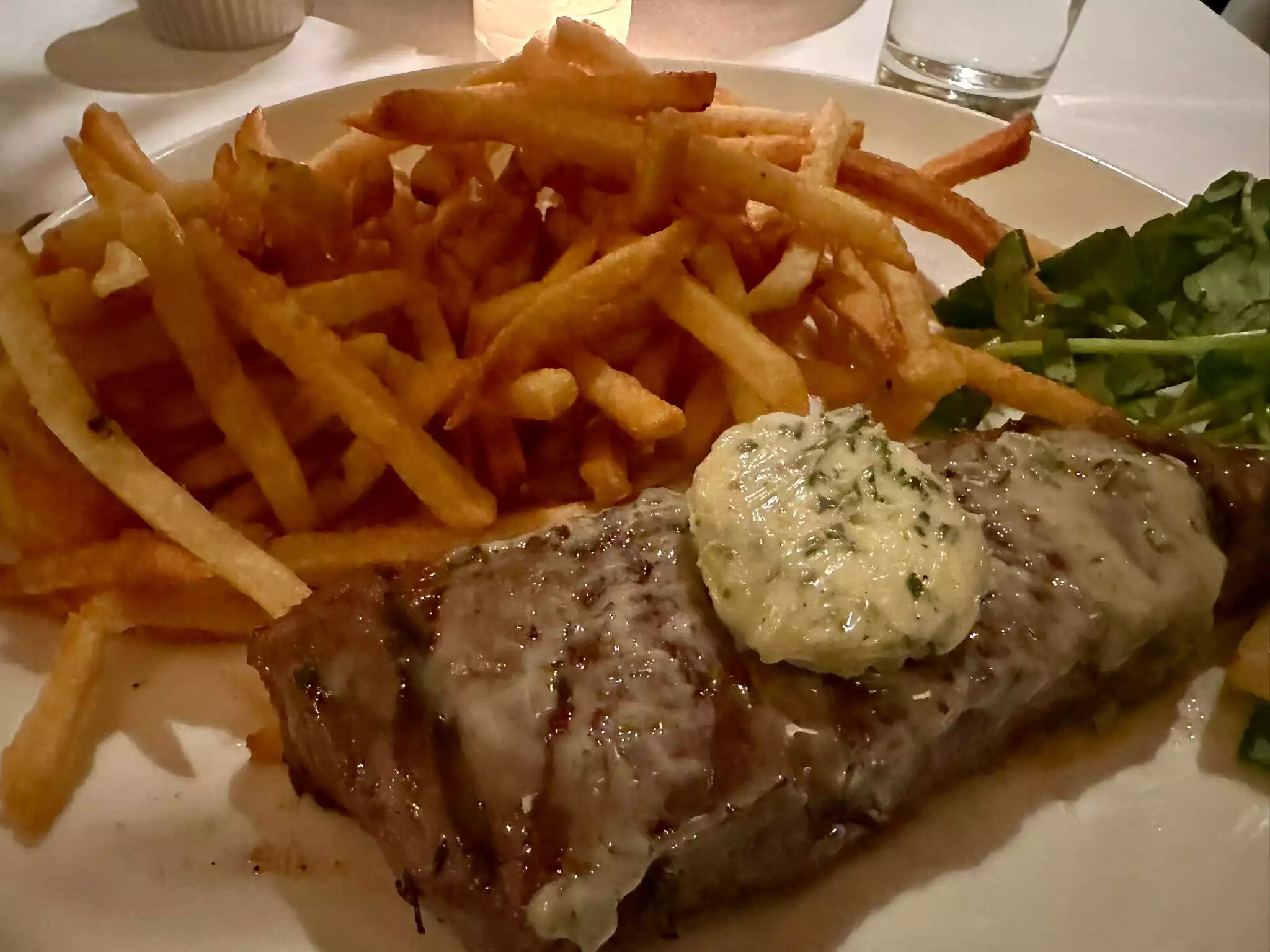 Every staff interaction, from the initial check-in, until the time we paid was both friendly and professional. This was some of the best service we’ve received at any New York City restaurant. The food was fantastic, we both had the steak frites with garlic butter. From what we received, the cost was very reasonable. Both the host and the waiter asked us about our theater plans to make sure we got our food in plenty of time to make our show. We will most definitely be going back.