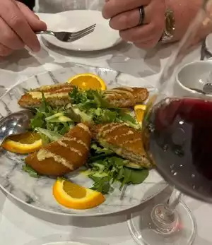 The food was excellent. It was the best I’ve ever had. The service was excellent. A family business. The owner even walked us out and showed us his car. We had veal parmigiana, capellini bosco and mare and salmone cartoccio. They were all delicious.