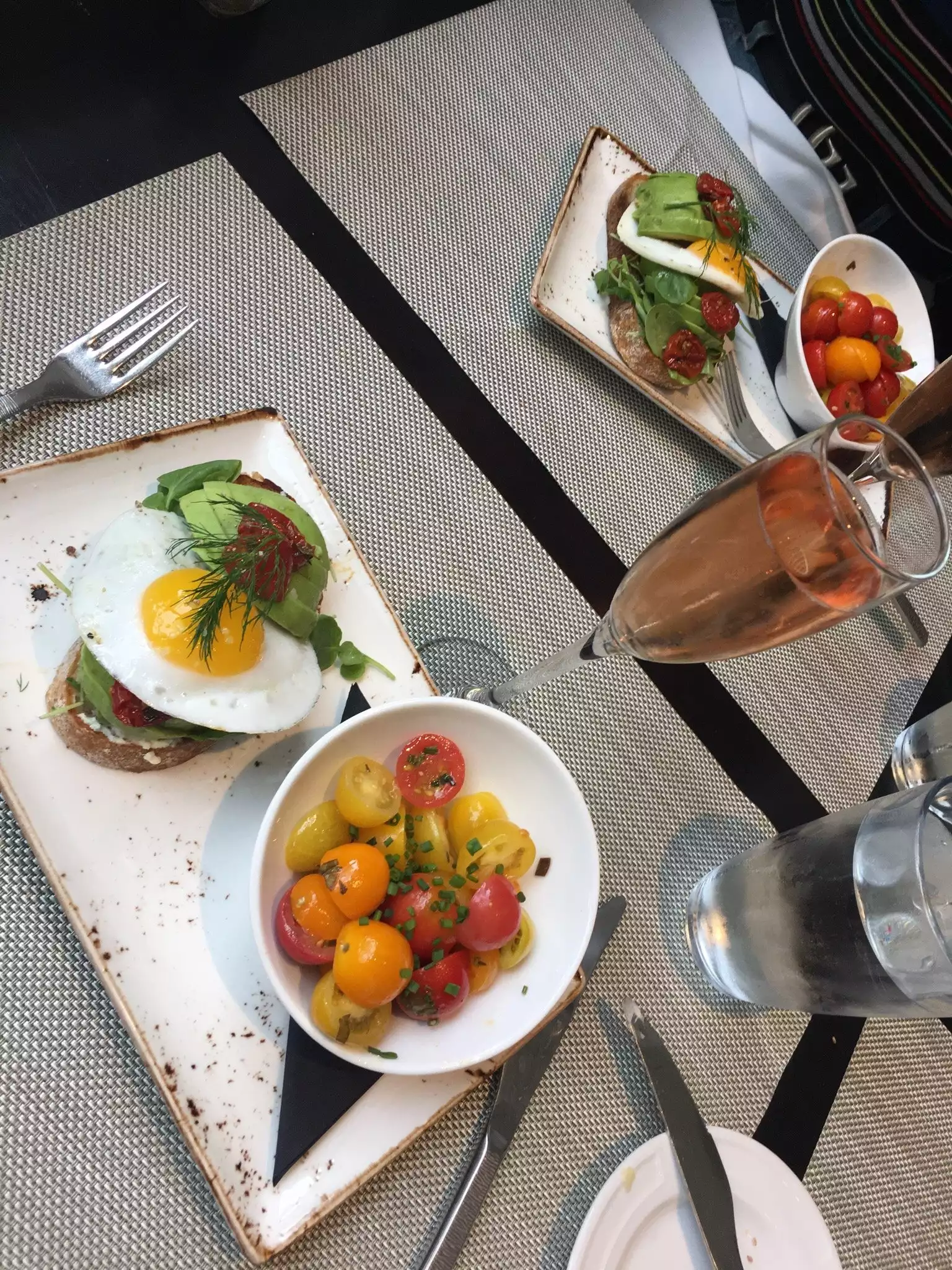 Cafe SFA is one of my favorite places for lunch in New York. Whether you are taking a break from shopping in Saks or meeting friends, the space is bright and inviting, with views of St. Patrick's Cathedral and Rockefeller Center. This time, I had the avocado and house ricotta cheese toast, topped with a fried Alderfer Farm duck egg, and served with a salad of marinated cherry tomatoes. Everything was delicious! The service was friendly and attentive. Excellent.