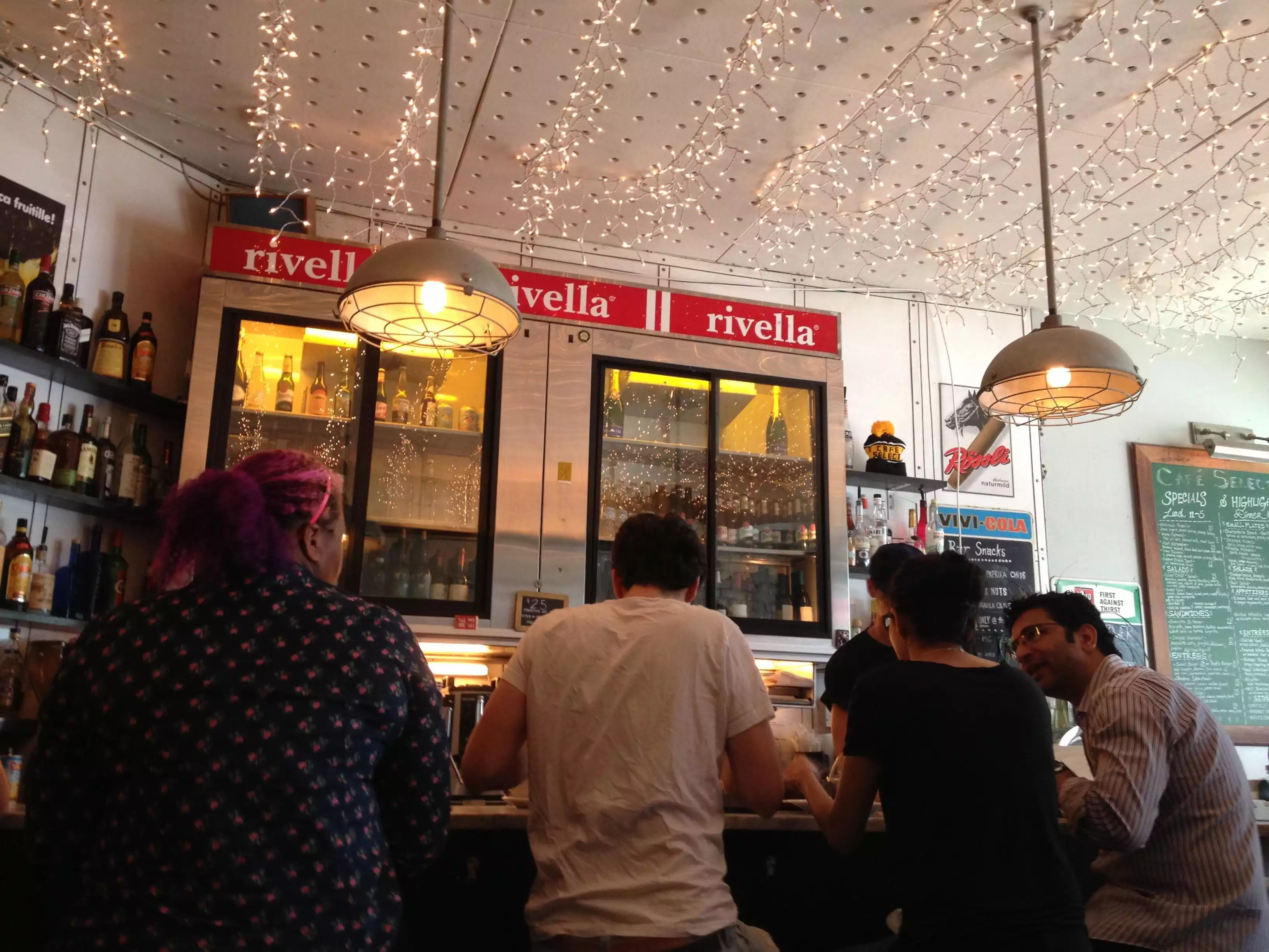 Again thanks to our Aussie living in NYC mate, who steered us here and it was another fantastic recommendation. So casual yet warm (Freezing outside) with lovely twinkling Christmas lights strung across the entire ceiling. On entry you see a bar and we were given a nice banquette (for 4) table. Not a big place, not tiny either. Crowd was relaxed interesting, informal - casually sophisticated i that 'I live in Greenwich Village but I'm eating out here tonight' way. Beers were fantastic. malty and deep flavoured. We shared a classic cheese fondue and other Swiss dishes including a Spatleze type of dish. Chicken and everything was great. Service was just right. We had a wonderful warm and relaxing time at Cafe Select.