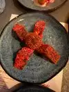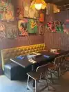 A wildly colorful feast for the eyes. A sensory overload. Our meal was tempered by a hit-and-miss set of dishes from the highly interesting and an eclectic menu. We ordered several items that we found to either be excellent (sesame steak skewers) or some that we took one bite and actually disliked to the point of leaving them sitting there to be taken away (wings). If you are willing to roll the dice, by all means try these unusual and unique dishes. Utilize caution walking through the darkly interior to the restroom in the back - it’s like an obstacle course and I smashed my chin on an exposed arm chair jutting out in front of the men’s restroom.