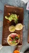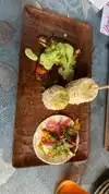 I visited the restaurant because I had seen it while passing by and it’s had good ratings. I can tell you, the ratings don’t lie… The restaurant I would say is a positive vibe, exciting, energetic, high energy spot. If you enjoy music, and hig energy with impressive food, this is your place. I love ther concept of (I can’t remember the phrase that was used) “ the food comes when it comes, in no particular order…it just comes to your tables once the kitchen finishes the dish” and I really think more restaurants need to adapt this concept… I ordered from their happy hour men and thought the portions were small it was filling (it was 8 sample dishes) My only issues were and that my personal opinion; the fish taco wasn’t made with fresh fish, and my street corn was definitely not charred or grilled…and that’s was disappointing because they both had good flavors…
