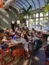 The space is great. It is an old greenhouse with soaring glass. The menu is not extensive and there are daily specials. If you want to have a leisurely lunch going during the week as it is crowded on weekends and you do feel some pressure to leave as there is not a place for people to wait for tables. It is a BYOB. Save room for sweets the cakes and pastries are very good. You can order cakes for birthdays. No man size portions so if you have a hungry man in your group you might want to order a starter.