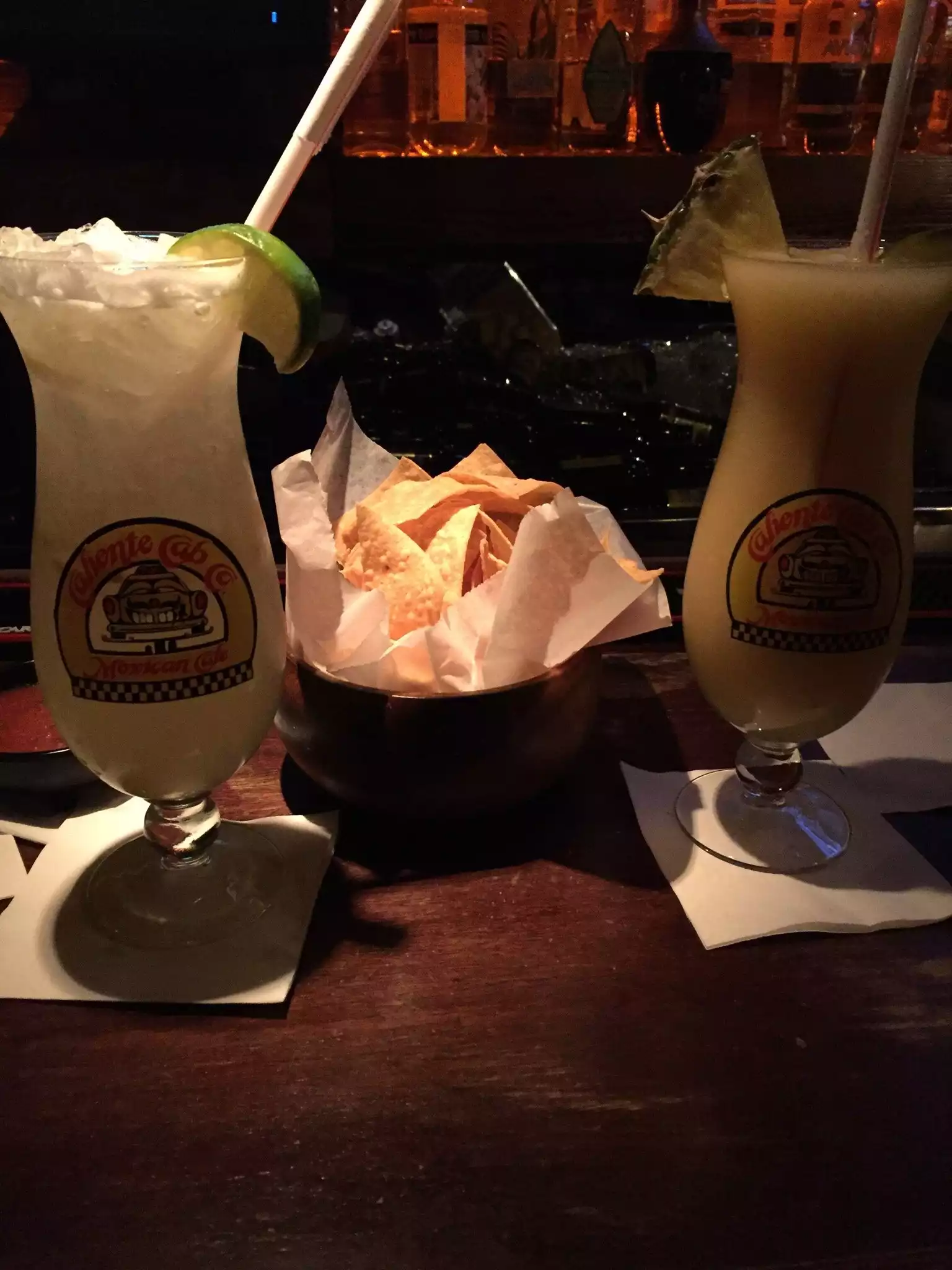 The food was standard. Nothing different. I actually wanted to because of the $100 Tequila drink. Welp, this is only served during Cinco De Mayo. I asked about the souvenir Caliente Cab company glass. Nope, they do sell or give those away either. The good part...the chips and salsa were fresh and delicious. I like how I could choose how mild or hot I wanted my salsa. The drinks are made with fresh fruit and you will be tipsy (24oz). Then again, we had a shot of tequila, also. There was a tequila list to choose from.