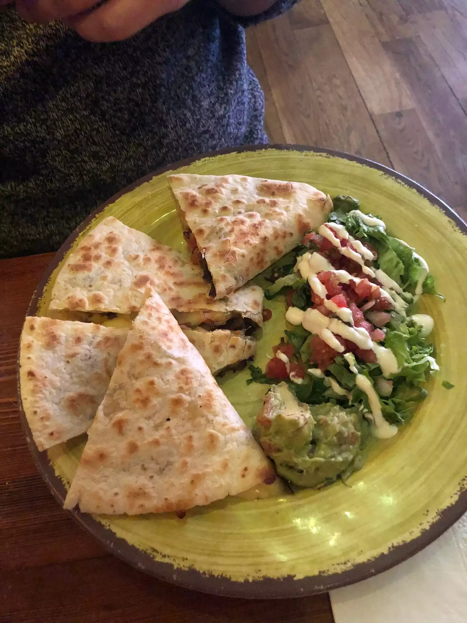 It was our last dinner in 2014 and it was a good choice. Service was fast and professional. Food was great and in generous portions. The guacamoles were very fresh and delicious. To be repeated.