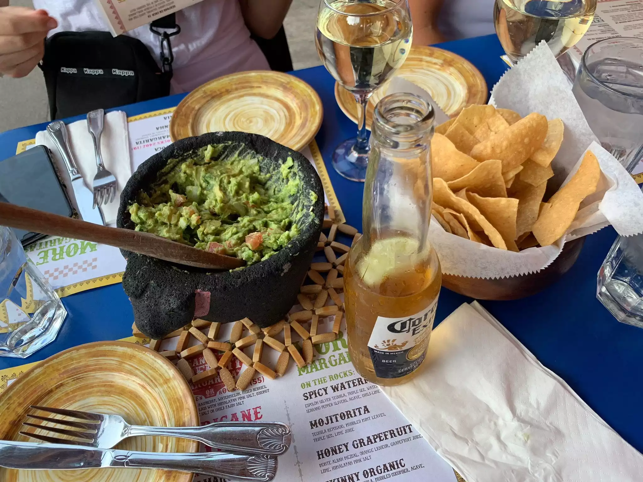It was perfect to spend a couple of hours at their outside table drinking margaritas and having some chips and guacamole. Perfect spot for people watching in the lovely West village. The Mojitos were not that impressive. but service was great and the freshly made guacamole was delicious.