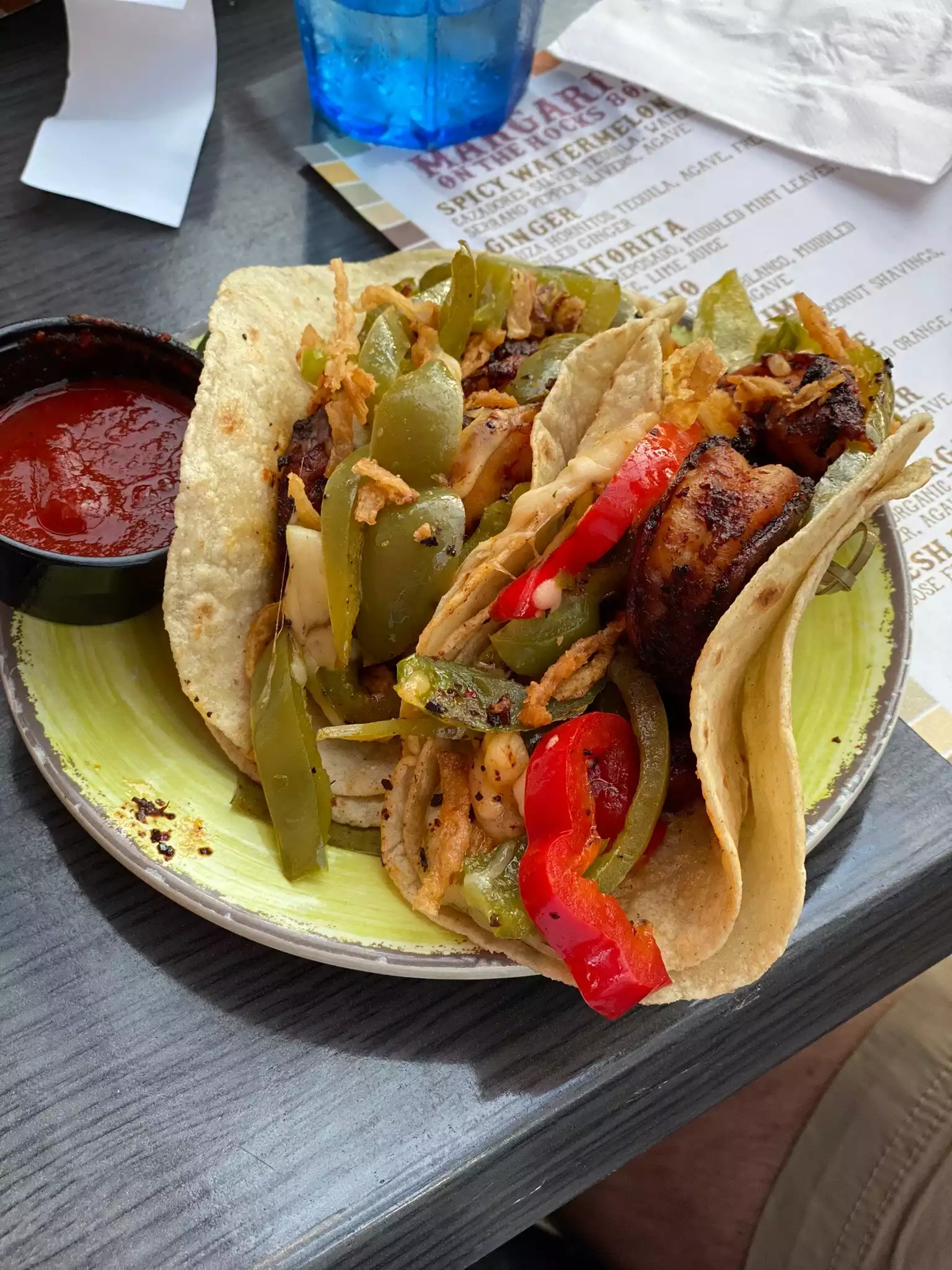 Enjoyed the Spicy Serrano Margarita a lot. Blue Chip Enchilada was fine. Good place to return to. Waitress was a pleasure too.