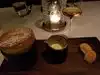 We had dinner in the adorable and creative Yurt Village and really enjoyed the atmosphere created by the decor, the staff outfits, the cider upon arrival and coffee which was served in a thermos with camping mugs with our dessert. The raclette appetizer was a delicious spread, which we enjoyed with our cocktails. Both the oysters and the dumplings were tasty. We agreed that dessert was by far the best course. Our main courses were disappointing: he had the pork chops and I had the crab risotto... at least, that is what it was called. I couldn't really see any crab, and due to the heavy seasoning, I couldn't taste it. Such a bummer since getting reservations was super hard and we were really excited about the meal.