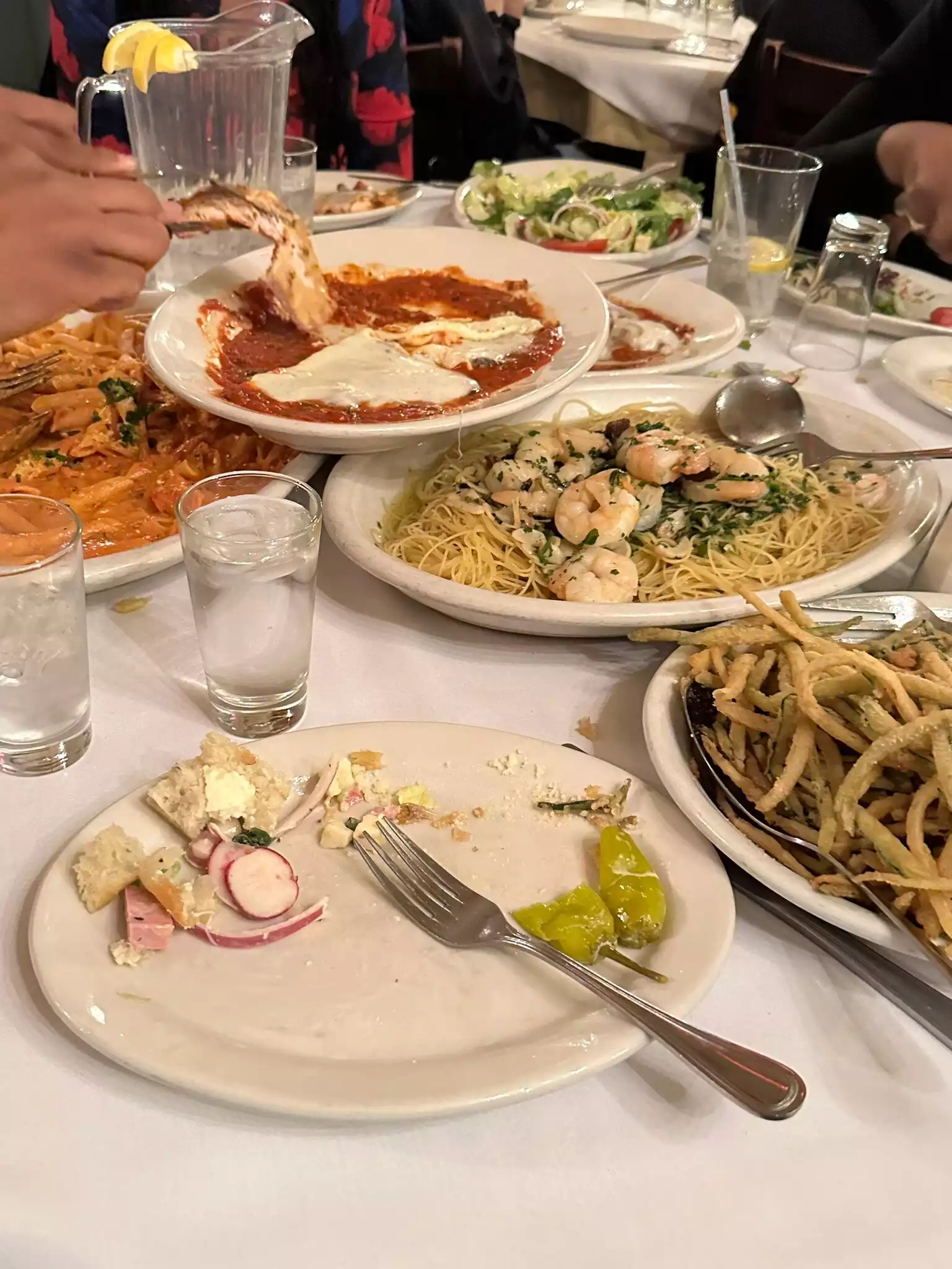 Had no clue this was a family style restaurant--it was myself, my daughter and my niece. The wait staff were super friendly and accommodating; the food was very, very good. I was incredibly surprised because usually family style restaurant food is just okay. They had decent gluten-free options which was nice; The Caesar salad dressing tasted homemade, and the bolognese sauce was excellent. Did we have a ton of leftovers? Yes! Not a bad thing when the food tastes that good. Really great, fun casual dinner that tasted delicious. Definitely would recommend for a group.
