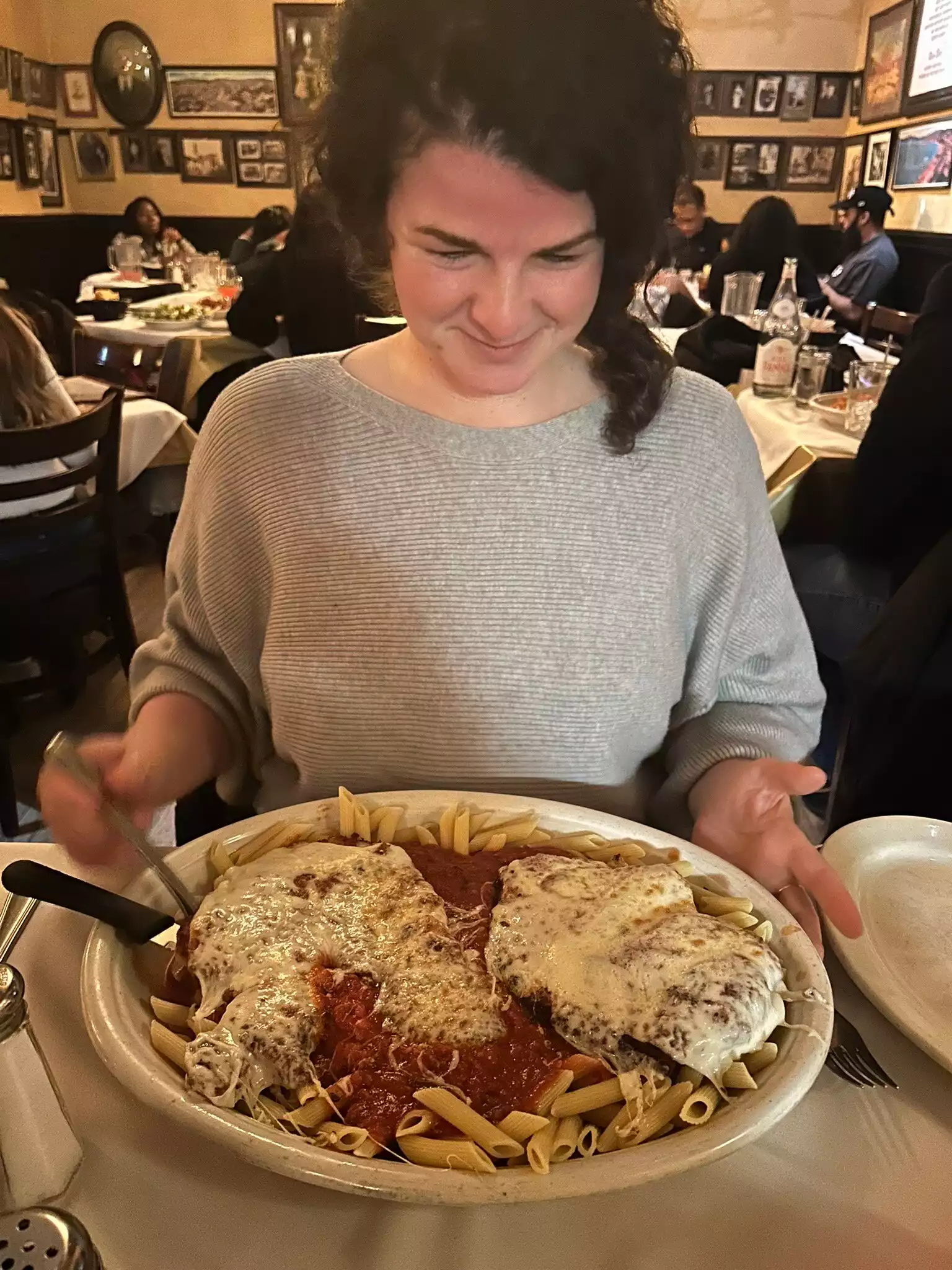 Have frequented Carmines for years so I was disappointed to see that they have declined so drastically after COVID. We ordered take out this past Sat from the 44th street location. Penne pasta with Chicken Parm. I have had this dish dozens of times before and it is great. This time? 2 THIN small pieces of chicken (burnt on the edges) and overcooked pasta. It was barely edible for $50. When I am spending $50 for dinner for 2 people on TAKE OUT, I expect the food to be edible, especially in NYC. I would not return here anytime soon. Extremely disappointed.