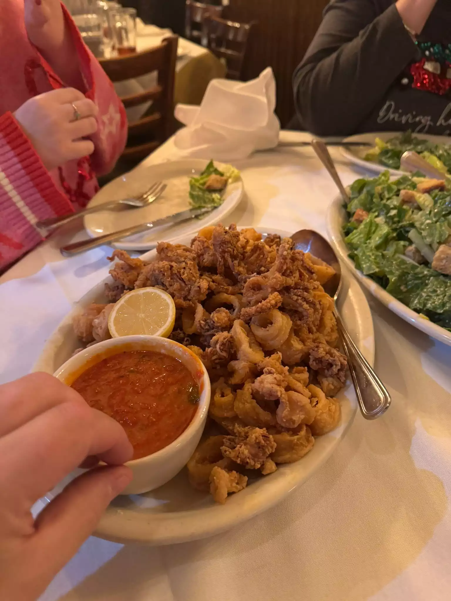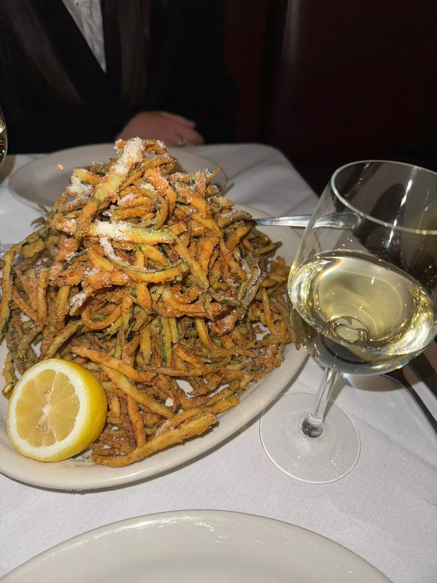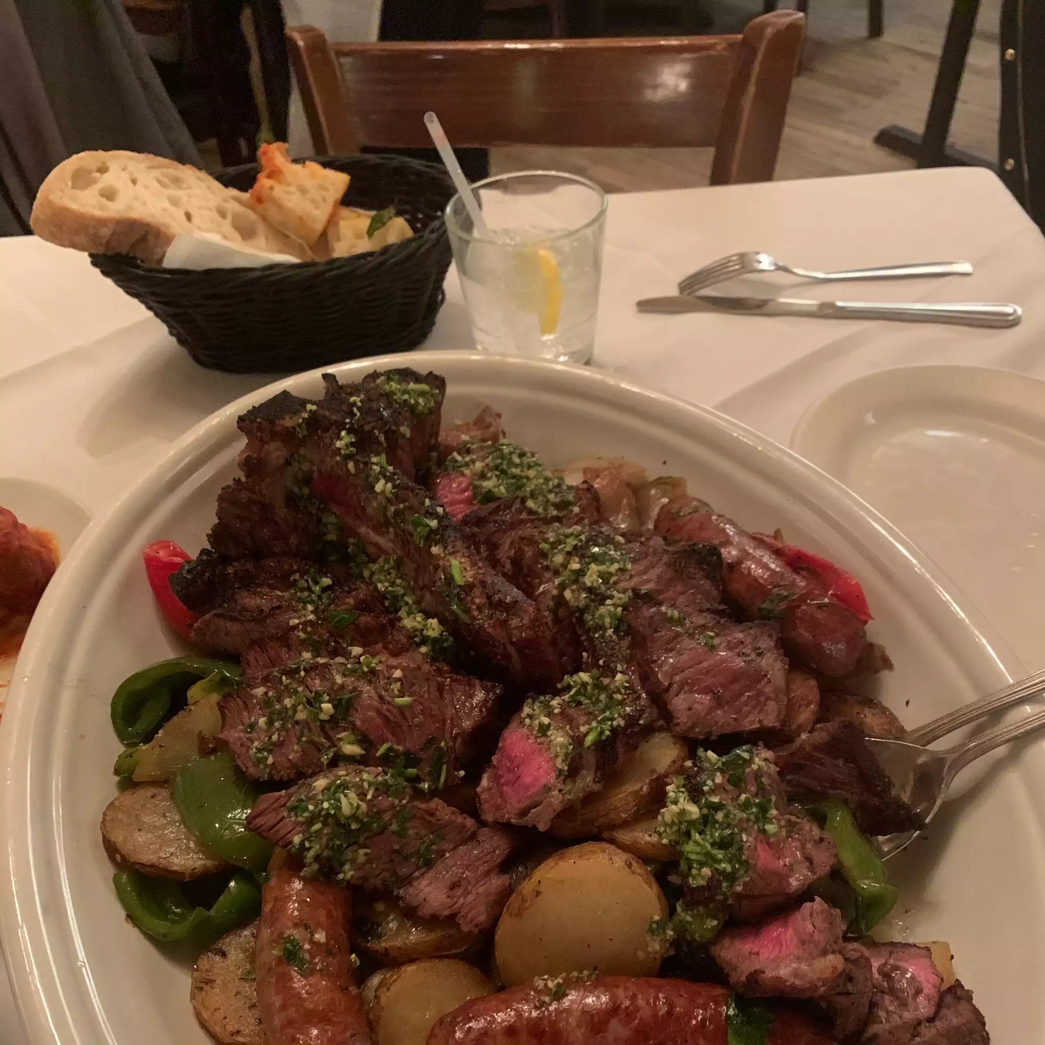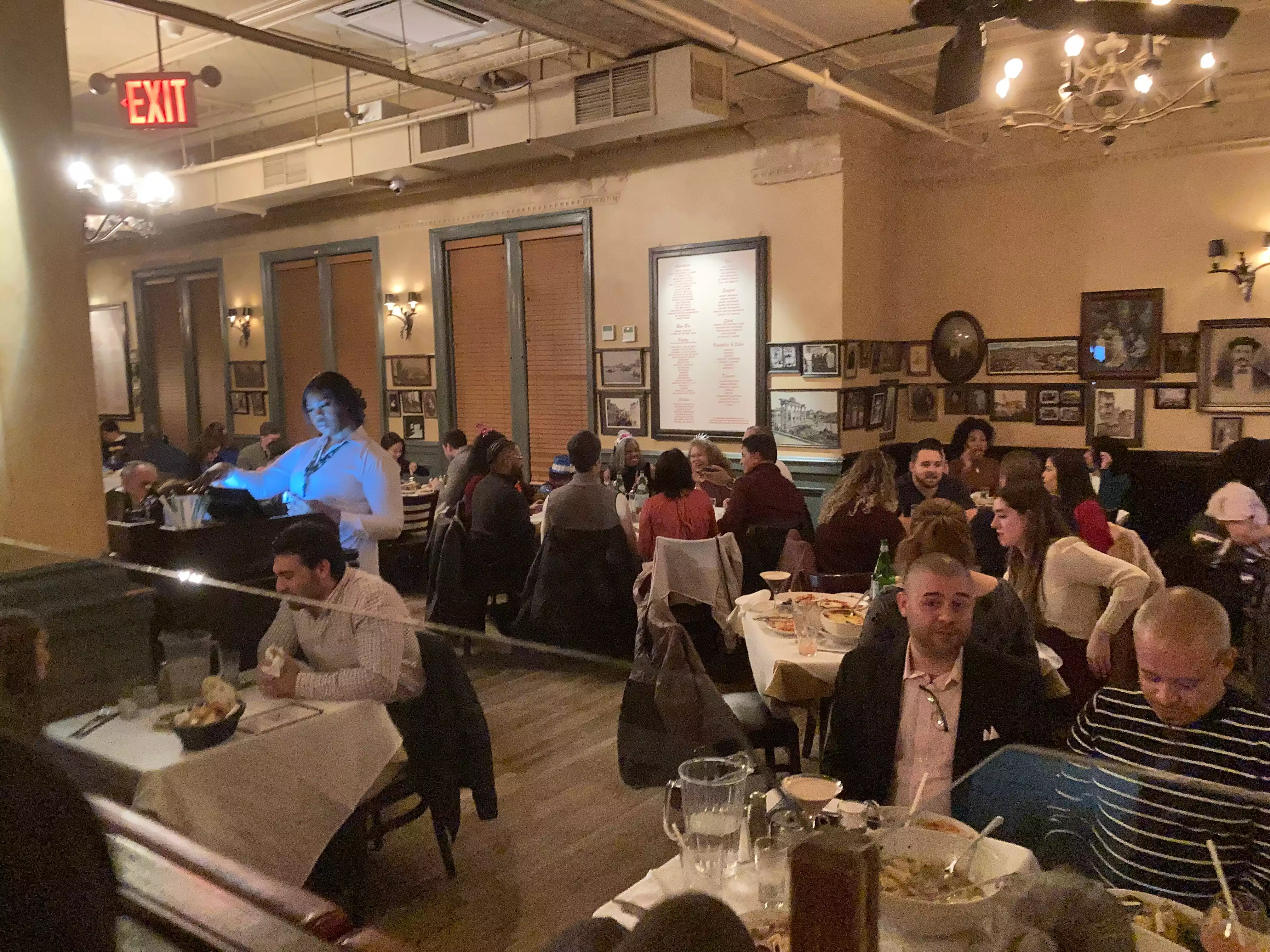 What a wonderful experience! This place is noisy, bustling, full of interesting people and just fun. We booked a table for 5 (which included two picky eater kids). We had to wait about 30 minutes, but there is a bar where you can have a drink while you wait so it’s not too bad. If you like to be seated as soon as your slot arrives, this won’t be it. We knew in advance that this was a restaurant that serves massive portions, so we knew to pick dishes that could be shared by all. We chose fried calamari to start, and then a porterhouse with peppers and onions as well as roasted potatoes. It was all delicious! We rarely order meat because many places can’t cook it right, but this was fabulous! We will definitely be back again someday!