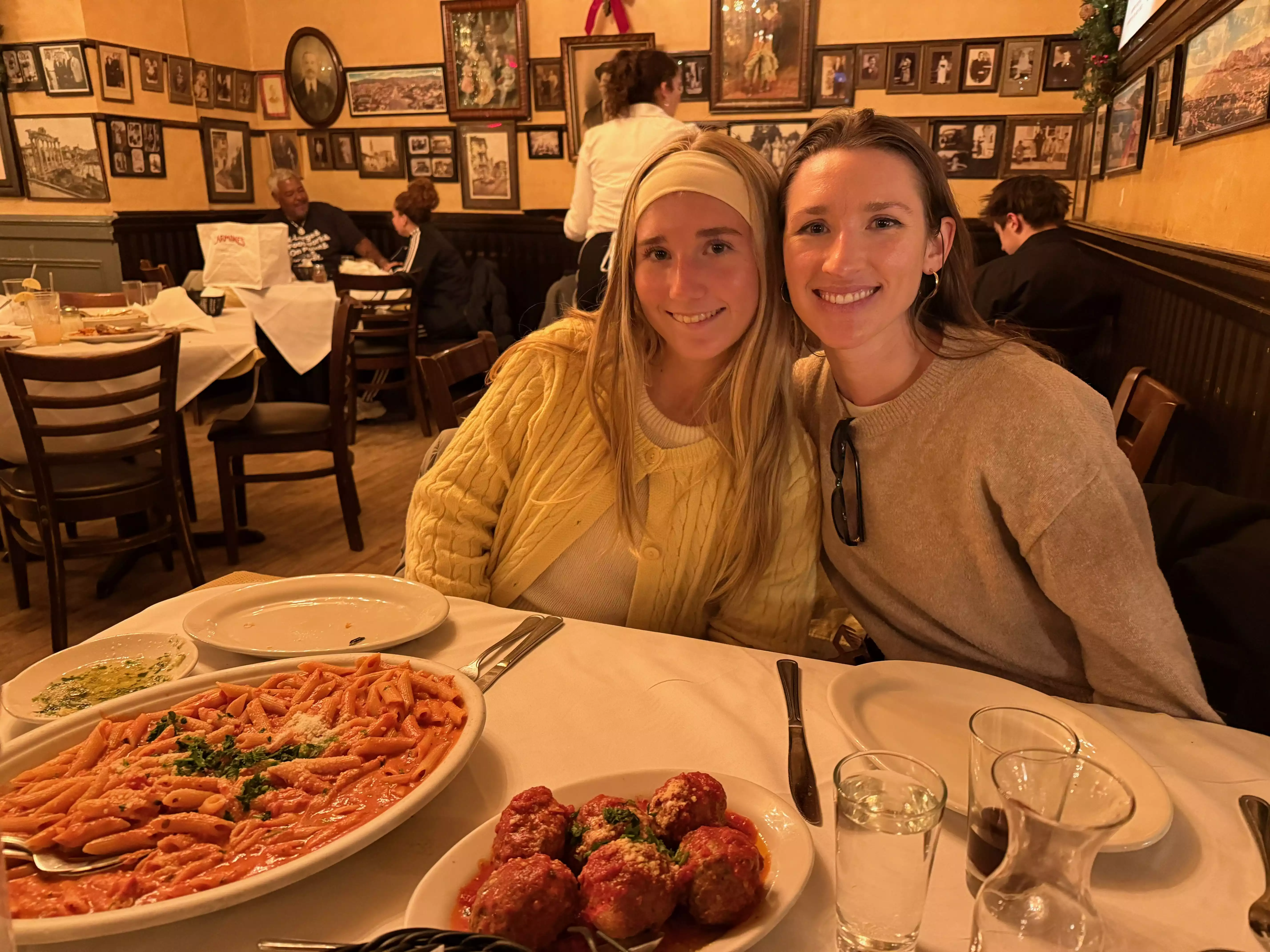 This NYC staple is worth adding to your "must do" Manhattan list. I've been to the Times Square location, but opted to try the Upper Westside one since staying nearby. We booked our reservation online a week in advance and only early Monday dinner (4pm) was available. However, I prefer this as it wasn't crowded. By the time we left, the restaurant was brimming with people. What I loved is that we were seated right away, served fresh bread and water as soon as we were seated and received very attentive service (which surprised me since this is clearly a tourist stop). I felt at home with the family style entrees and happy wait staff. We opted for the penne a la vodka, meatballs and red wine, which arrived before we finished our first glass of wine. The pasta is homemade and sauce flavorful (wish they sold it to take home). We split this between three people and had plenty to bring back to our hotel for leftovers. Even with that, I ate too much and had to walk it off for miles!