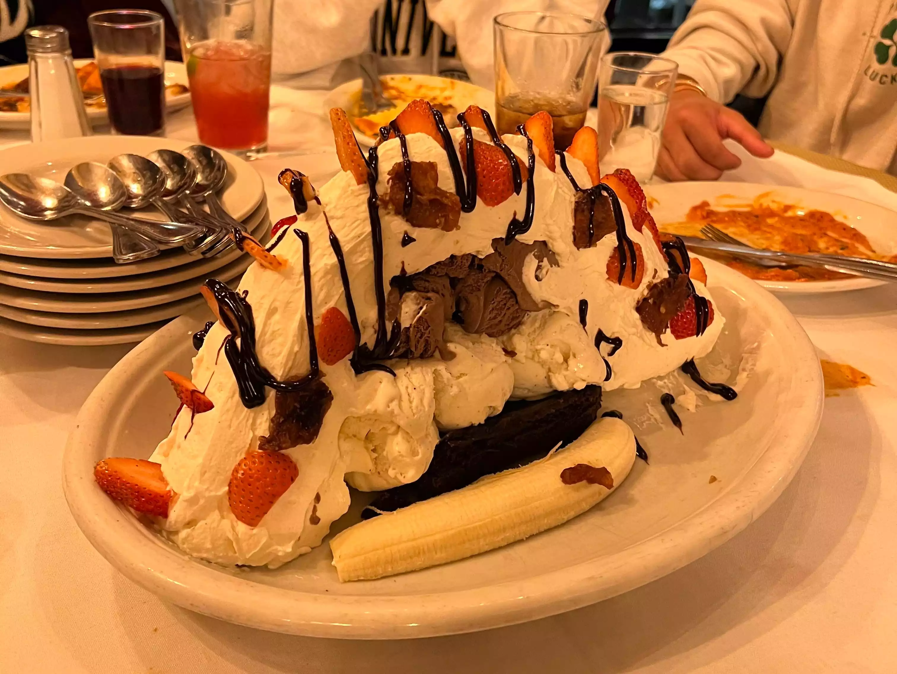 We bring our family to Carmine’s for a Christmas holiday season get together for dinner almost every year- for decades. Service and food was as expected until dessert when we ordered 2 Titanic, a bread pudding, 6 canoles, and a tieramisu, several cappuccino and several coffees. The desserts were delivered including the two Titanic ice creams without plates or silverware. We had several young children with us who had to just look at the ice cream as it literally melted on the platter because we weren’t given plates or silverware. My adult son finally got up from the table to inquire about plates and a stack of dirty plates- yes mine actually had chunks of old wet food on it- were set down on the table - not passed out around to the guests (there were 18 in our party.) After a long wait the cappuccino was brought cold - I told the waiter and he just acted like he didn’t hear me- we waited and again my son had to get up from the table to ask for the coffee several of us had ordered. After the coffee was finally brought I had to ask for milk (we were told they were out of half and half it was only around 1:30 in the afternoon) another ridiculous wait time for a large (water) pitcher of milk was brought that we passed around.By the time the coffee was served we had finished dessert. It might sound petty but I didn’t even receive a spoon or saucer with my coffee. When you have a check in the amount of $946.00 I don’t think it’s too much to expect dessert and coffer to be served properly. Our server was very young and inexperienced. Better training of the wait staff is needed. In the past we had experienced, mature, wait staff and the service was perfect. I spoke to the manager as we were leaving and she apologized but didn’t seem surprised at hearing about dirty plates being brought to our table or the awful coffee/dessert service at the end of our meal. The quality of service is an important aspect of the dining experience and in my opinion equal to the quality of the food. Here I am after we dropped over $1000 on a dinner feeling disappointed. And not just me…everyone in the party was in disbelief over the awful service. Great.- thanks a lot.