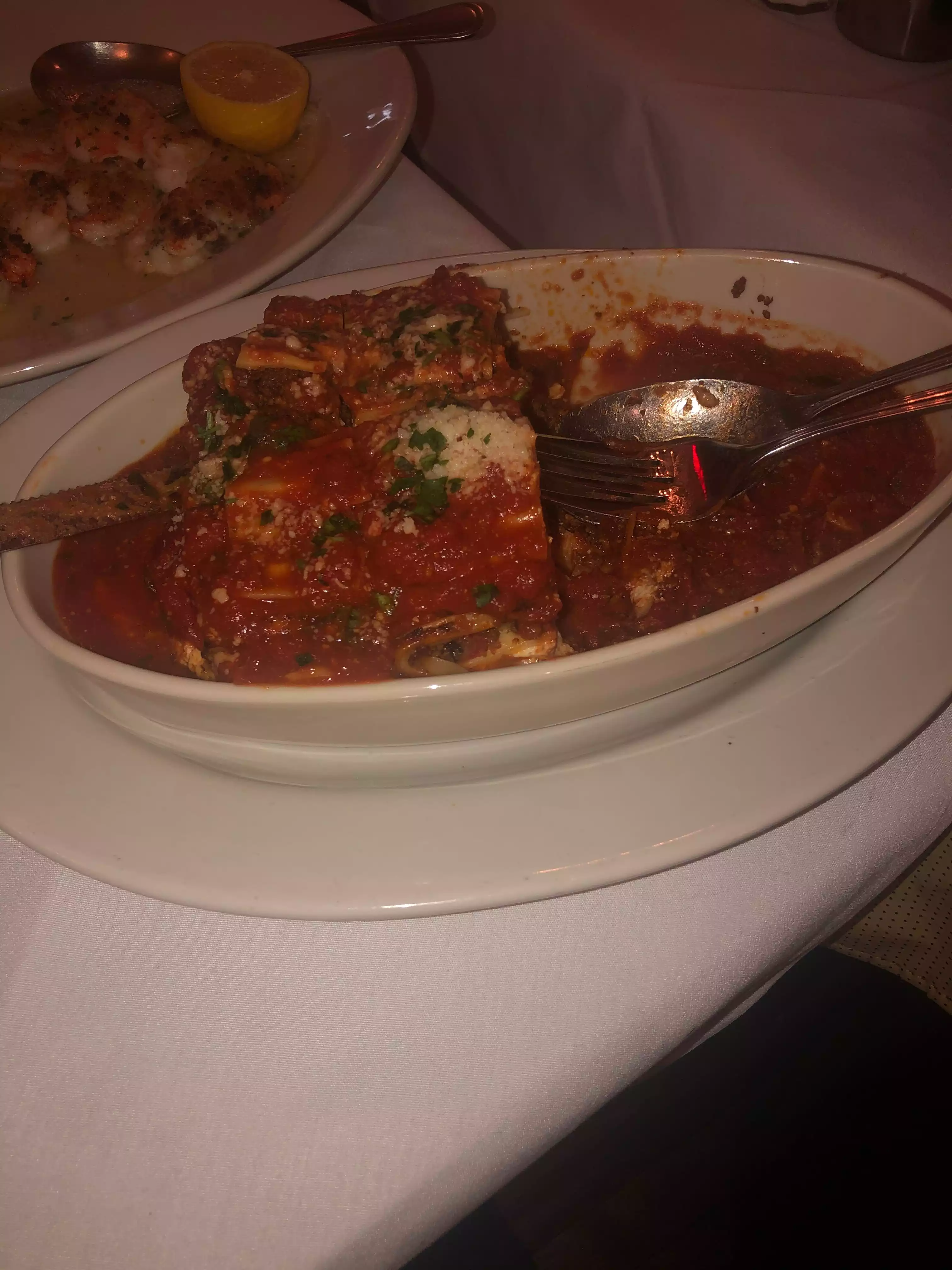 I was recommended to give this famous Italian restaurant a try by my hotel, and the food was awesome. GIGANTIC family portions available making it easy to share and try different plates especially if you are family or friends. I had to the Porterhouse steak which took over 45 mins to cook but was well worth it. Cooked to perfection and great quality of meat in my book. The linguini and Chicken Parm dinner that my family ordered were absolutely 5-star as well and came out a lot earlier than the Steak. I would also recommend the Fried Calamari with marinera sauce as an appetizer to start. Overall, everything about this restaurant is 5-stars including the dessert bread pudding. I just didn't appreciate the 15-minute wait despite having a 7pm reservation. The restaurant was not full, so I'm not sure why they would have given my table away to another party, although we arrived in a timely manner.. Despite this, I would definitely visit again on future family trips to New York City.