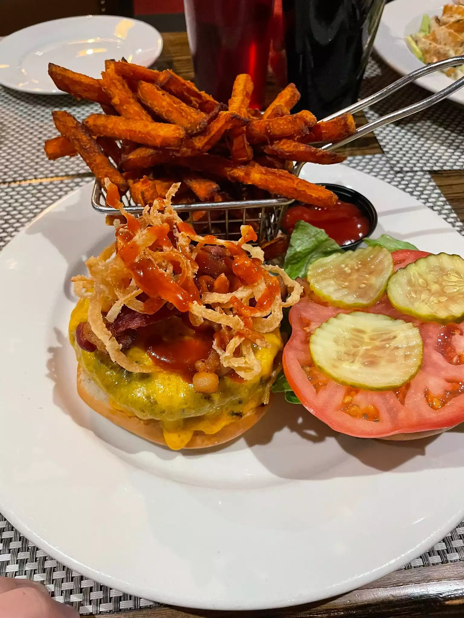 My partner and I visited for a late lunch on a Friday afternoon. He had the Cajun Burger cooked medium well (as ordered). The flavors were great and he was given a generous portion of side salad. I had one of the Specials - Short Rib Tacos. They were delicious. The BLT pasta salad was good too. Service was attentive and friendly.
