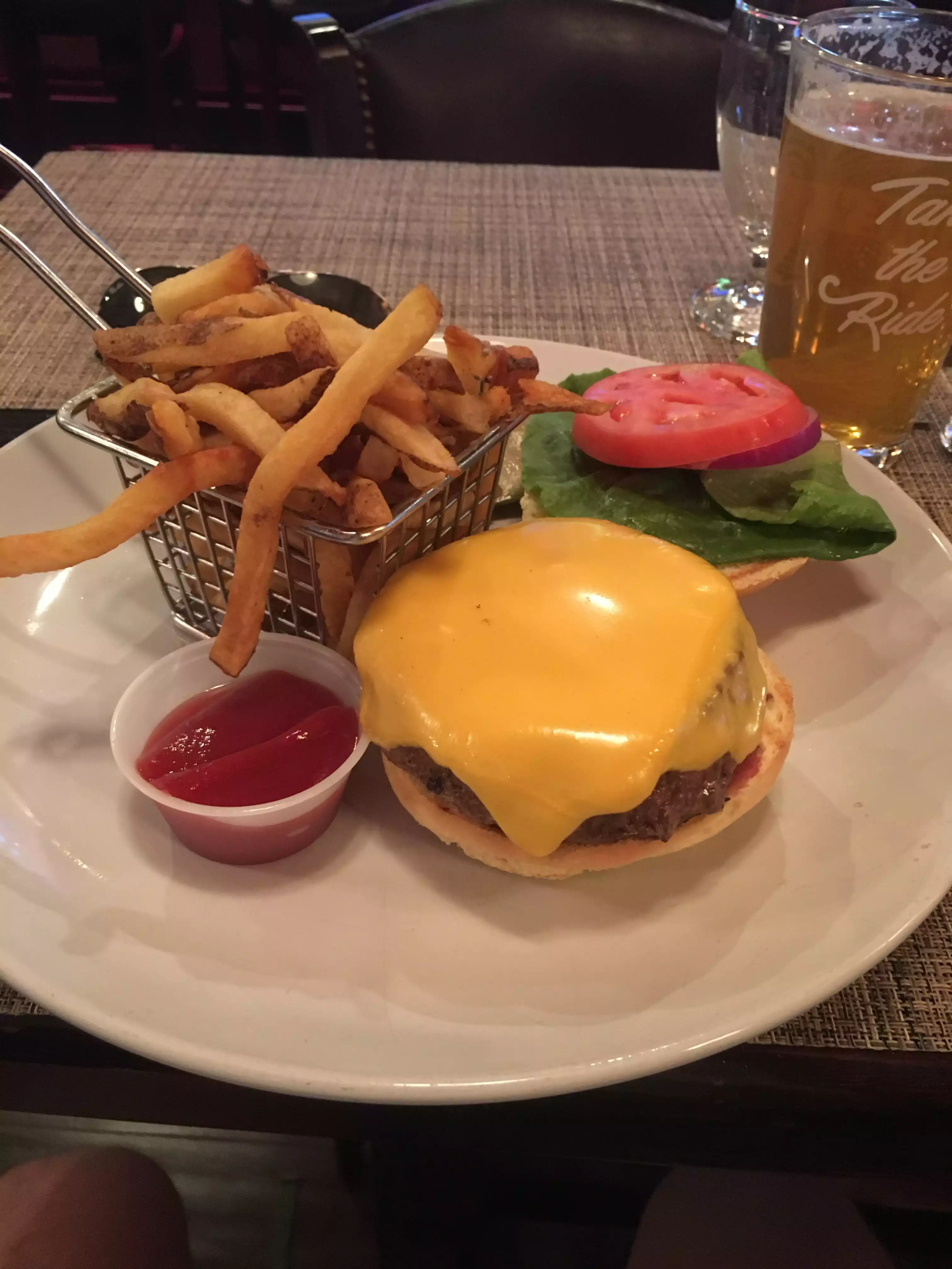 Went here with a friend in September. I ordered the cheeseburger which was tasty and the patty cooked just as I asked for.....medium. The chips came in a little frying basket which was quite a nice touch. However the chips were extremely soggy from the oil and were quite off-putting. Overall an average meal for NYC. A lot worse places to go but there was also better places to eat around the area.