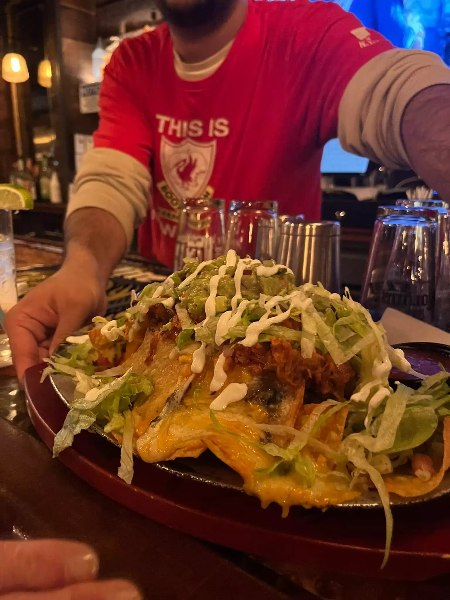 Went two nights in a row for an evening family meal whilst in New York. As a Liverpool fan I was excited to see the place due to the obvious connection. Well decked out in Liverpool and Jamie Carragher memorabilia but the bar offers much more. The food was superb and reasonably priced. We had wings, chicken tenders, nanchos and jumbo pretzel. No complaints at all. The drinks were good and I particularly enjoyed the spices margarita. Will definitely be back when I’m in New York again.
