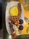 It was a cool little place with limited breakfast items. I suspect their better selections apply in the evening hours. The waffle was very good and fresh with eggs fresh fruit and a breakfast meat included. Service was great. Nice spot to see great artwork on the walls for the interstate! Seriously it is amazingly beautiful!
