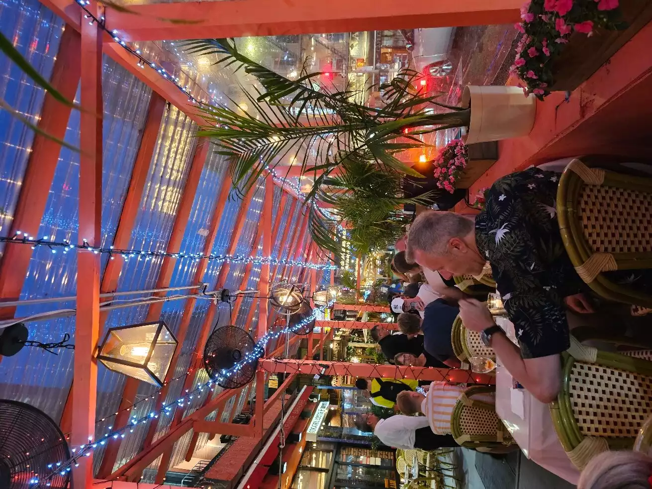 The food is fine despite needing way more vegetarian creativity. However, and I am not sure if this is usual, but a manager / owner guy constantly hawking passing traffic and tourists (we get it, it is a competitive strip), making audible comments and back-chatting some of those who are not interested is not actually fun for the diners eating to witness.