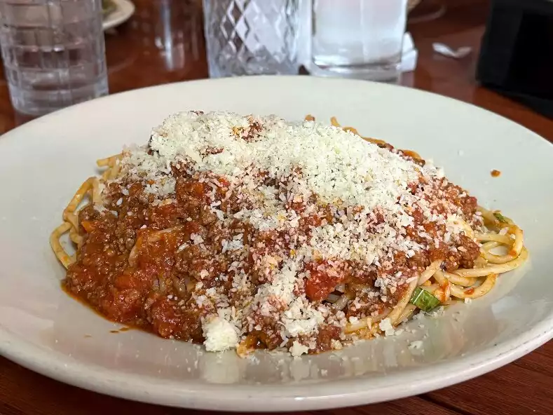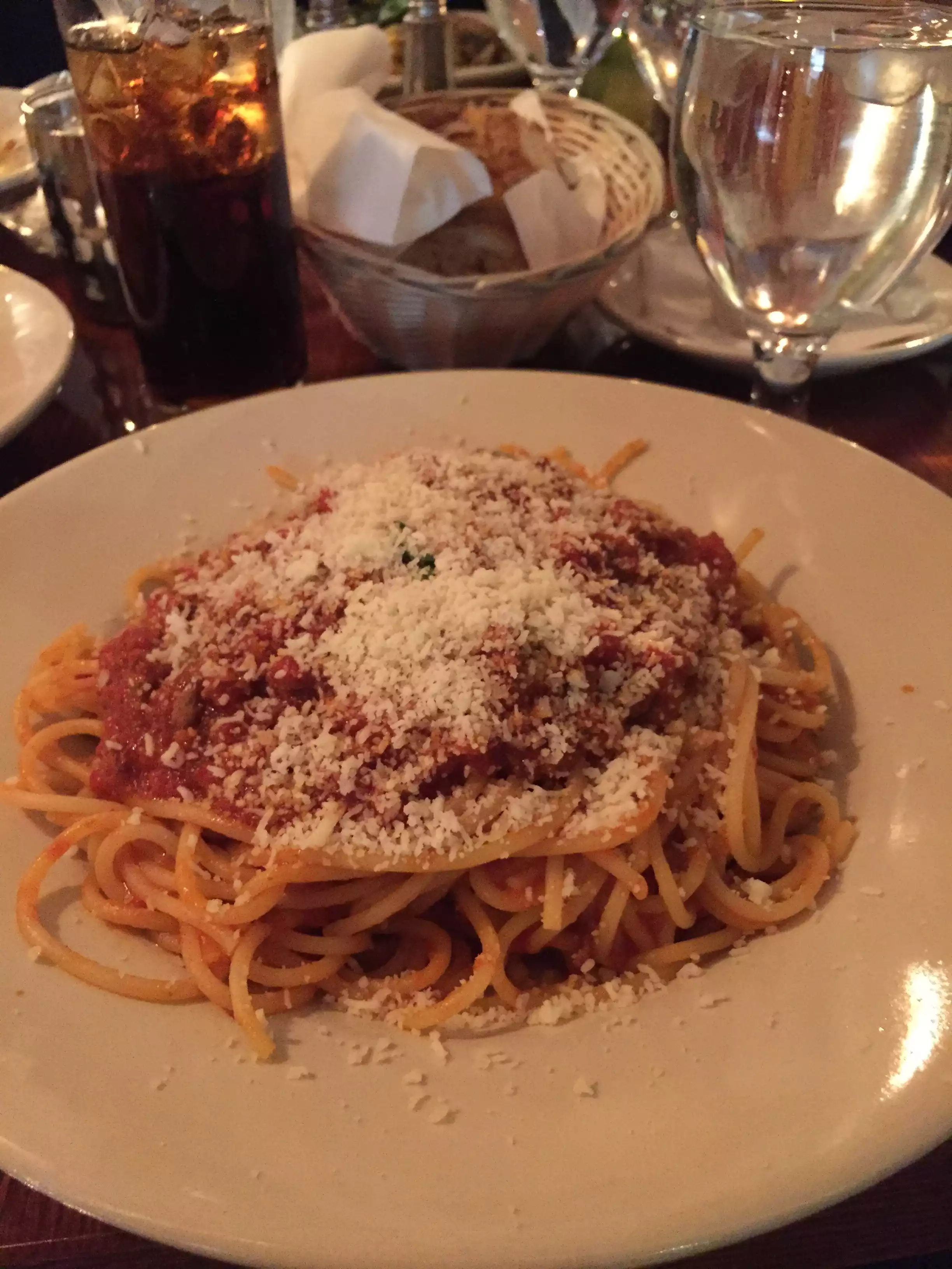 Food was great. Bread fresh. Calamari tender. Bolognese and meatballs were delicious as was eggplant parmesan. Best was veal parm. We’ll all be back.