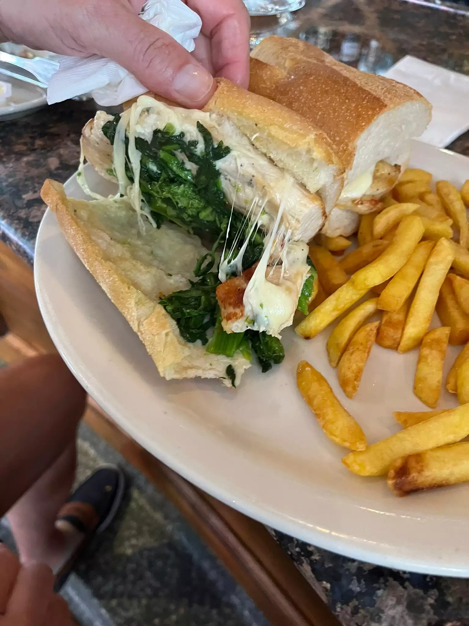 We we welcomed in by Wilson and Amadeo at Casa Bella. We had been eating at Forlini’s for years- the place was there for 100 years. To our disappointment and sadness it is gone. So what to do as we were hungry for great homemade Italian?We walked to Casa Bella and Wilson greeted us as we asked if there was a bar and lunch. To that he replied that he would gladly seat us in the cool spot because it’s very hot today in NYC. Great vibes…. To the bar we go and order our sandwiches; chicken parmigiana with broccoli rabe and I ordered the eggplant parmigiana hero. Delicious- the bread was crispy crust and soft inside. It’s my kind of sandwich. The fellow at the bar was so accommodating and attentive. If you’re in the Chinatown/ Little Italy area, it’s a great spot.