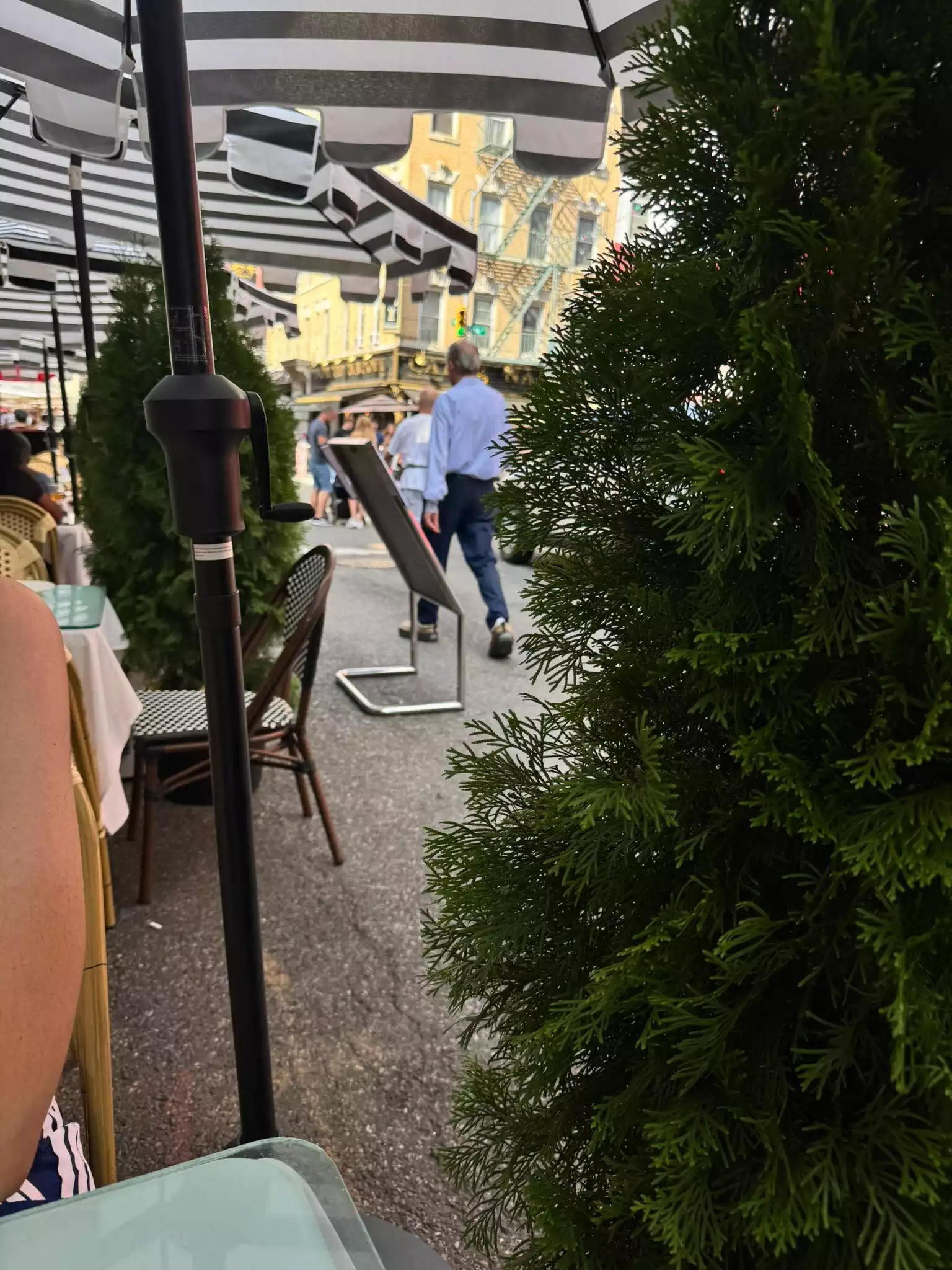 Pasta was made perfectly, true Italian personalities. Loved the guy outside and our waiter. Sitting here as I’m writing this. Cute inside, clean bathrooms. Nice to people watch and eat at the same time.