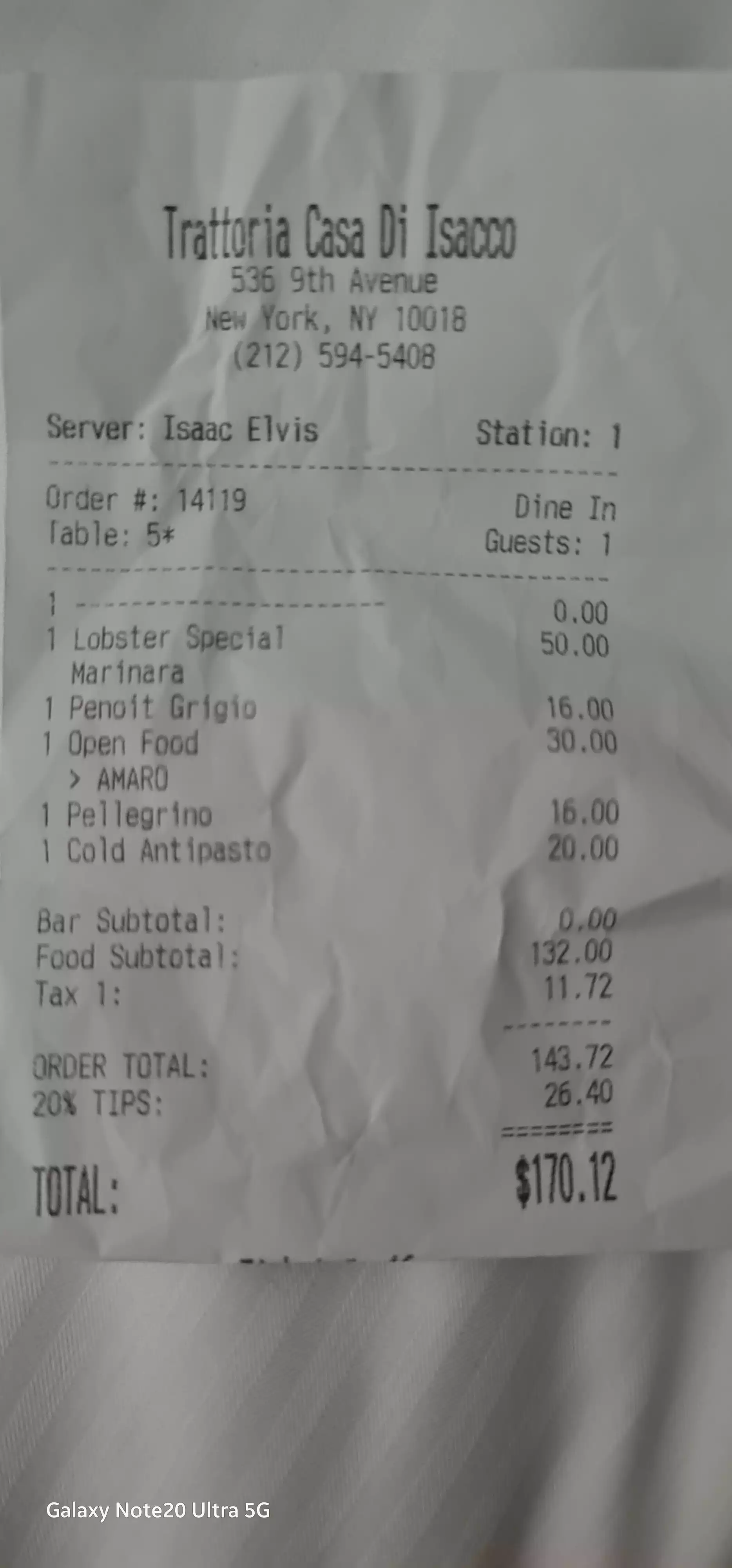 I wandered into Isaac's on my last night in NYC, a middle aged solo diner, and he treated me like a queen. Asked me what I'd really like and created a dish for me (delicious grilled halibut I think it was, on pasta with garlic and olive oil). And he put Elvis videos on for me to watch while I ate. I have photos to commemorate the evening. About to go to NYC again and I'll be sure to stop by.