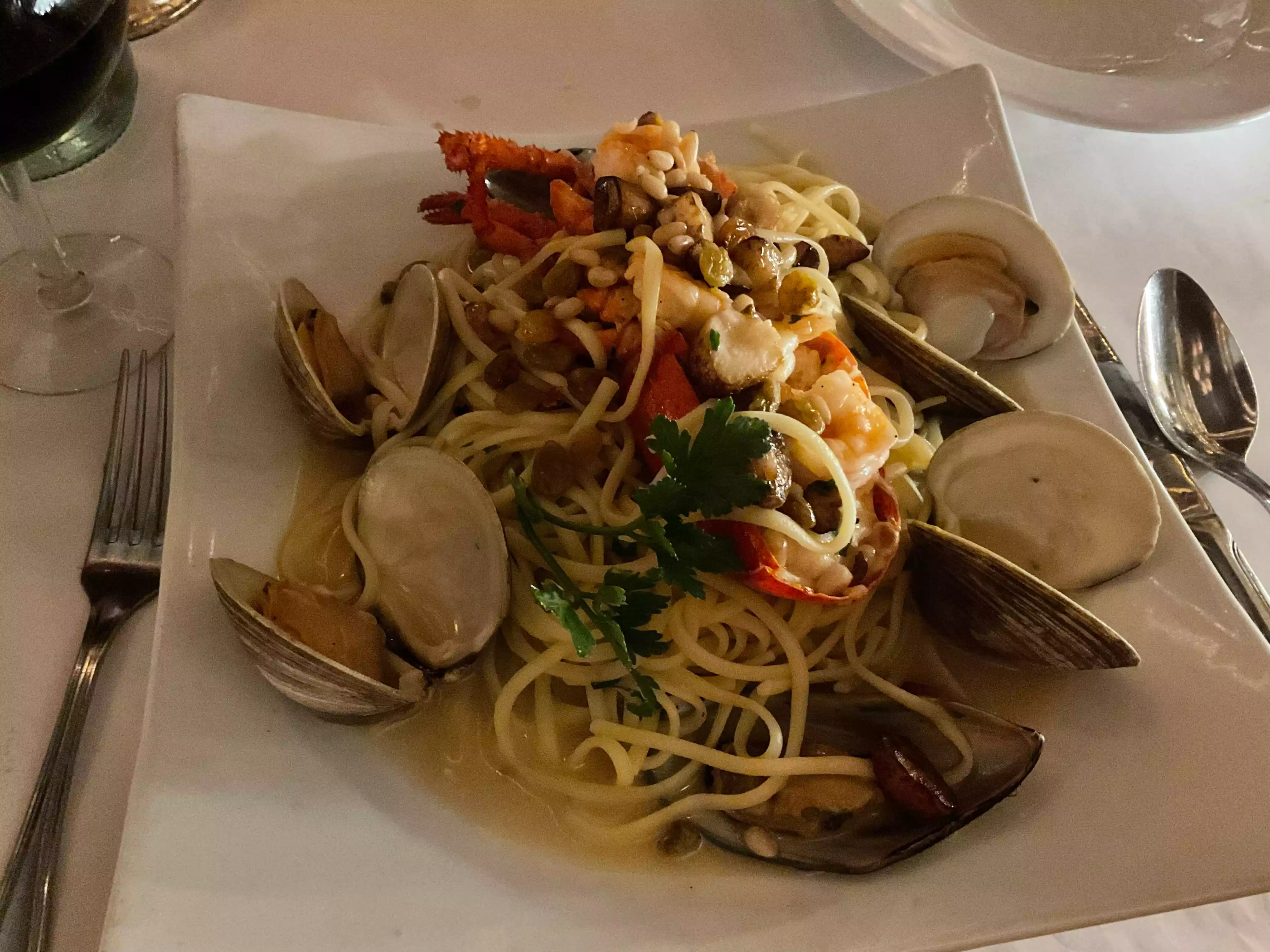 Food was fantastic, pasta and mussels was delicous and white homewine perfect! Cozy, romantic, italiano atmosphere.