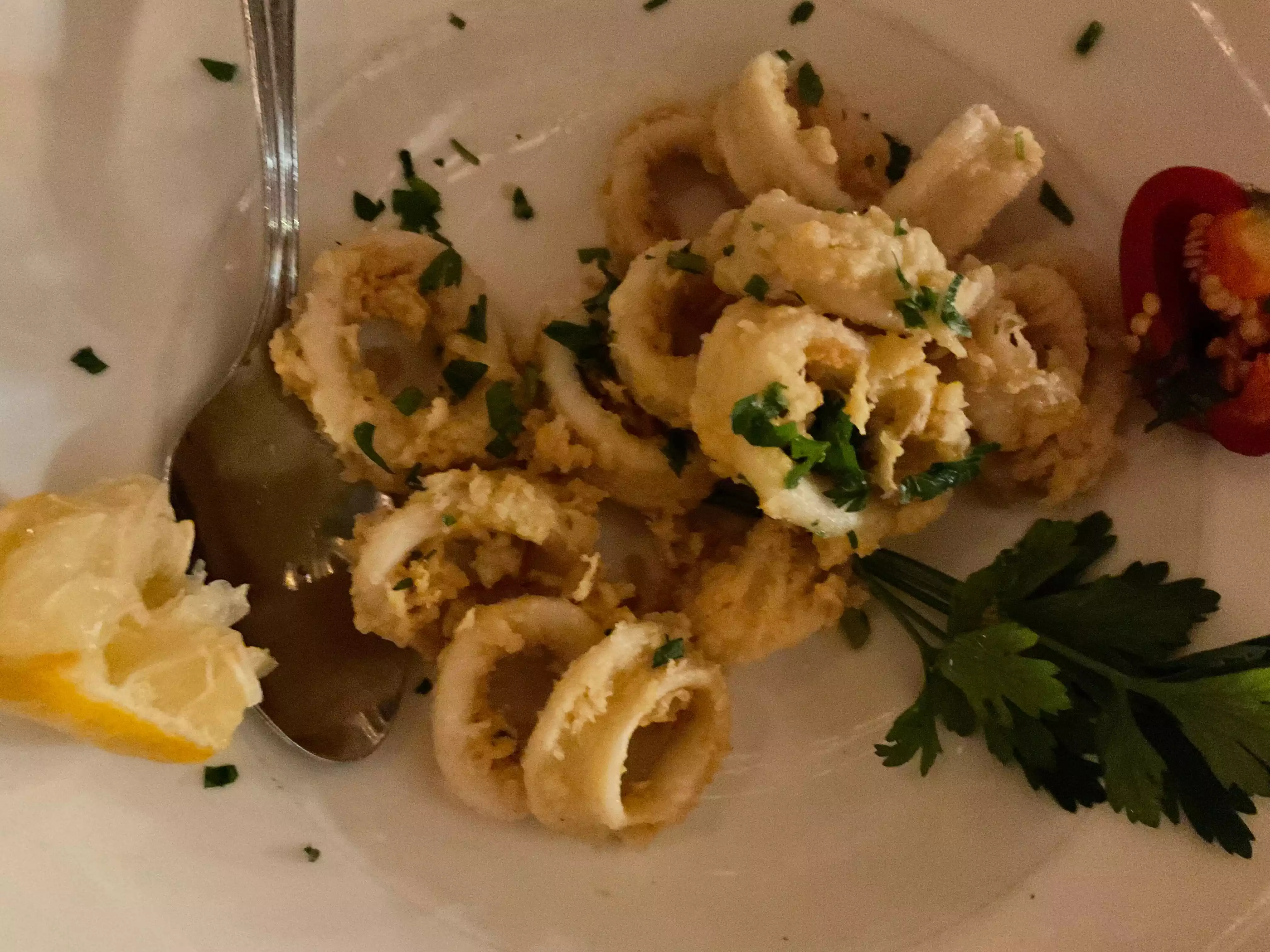 Food was terrible. Bread was stale, dry and crumbly. Grilled calamari appetizer was rubbery. Spaghetti carbonara was gummy and veal piccata overcooked and drowning in sauce. I’ve seen reviews describe this as a hidden gem. In our opinion this restaurant should remain hidden and it certainly is no gem!