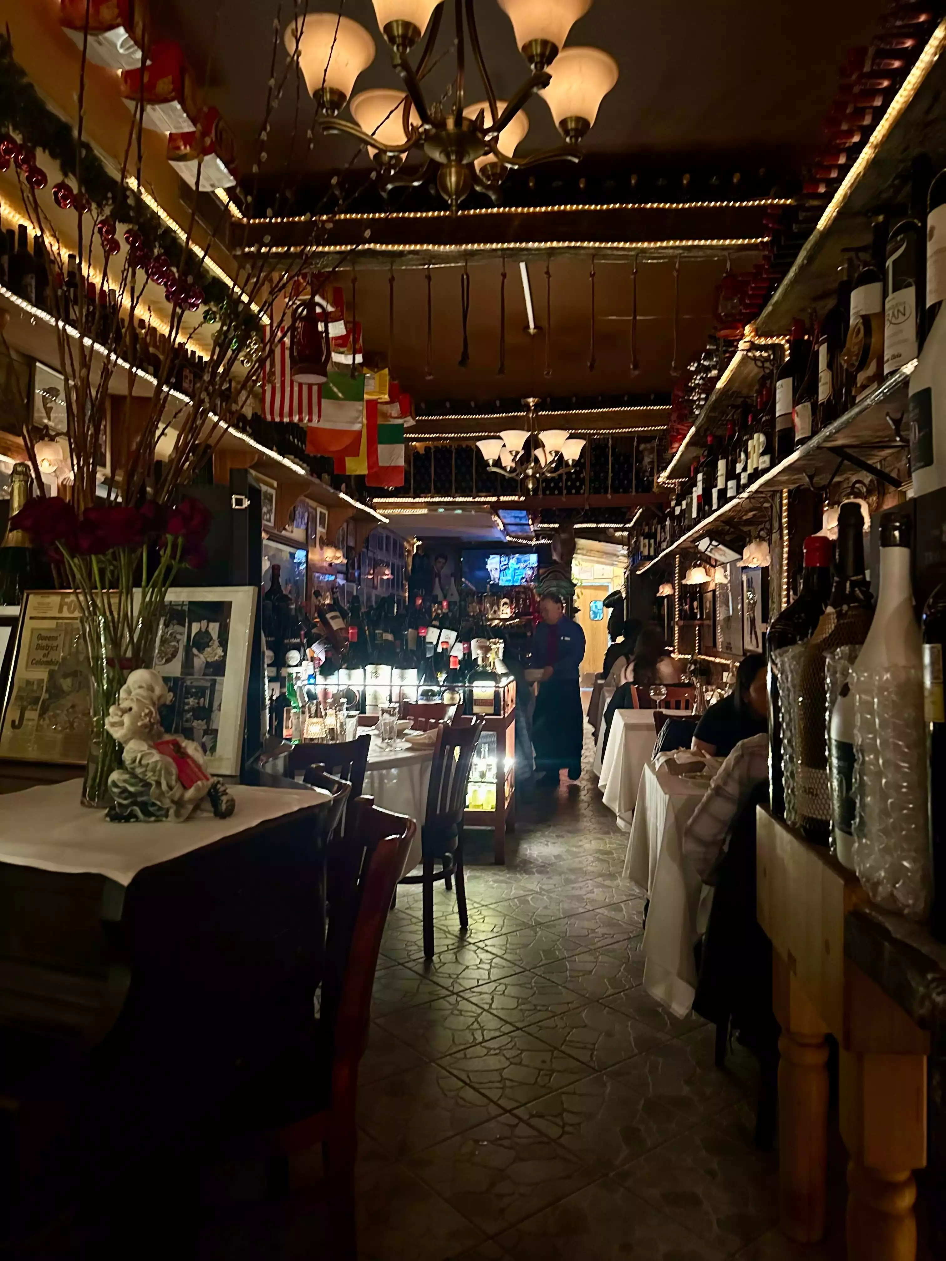 Visiting this place is an experience in its self as the owner Isacco is a character and his staff are not far behind. Don't be put off with the flat screen tv as you will see the old masters belting out tunes and this adds to the atmosphere of the place. The food is top class and if there is a group of you then get the house carafe as its cheaper that the wine list selection and probably just as good. We had a fantastic time here in the big Apple.