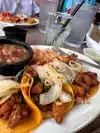 We enjoyed margaritas and beer along with guacamole & quest dip. The shrimp tacos with corn salsa are a delight. The El rio platter provided an assortment of good eats. Solid Mexican dishes. We were serenaded by wonderful musicians.