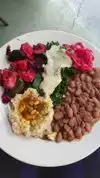 Very organized, vegetarian soup salad and plate. It was very calm, nice music, and views. Every day there is a different soup and plate. You pay first then get drinks, soup and salad. They bring your plate of veggies, beans, etc. Very tastey and good amount. All was very delicious, and would like anything they serve.