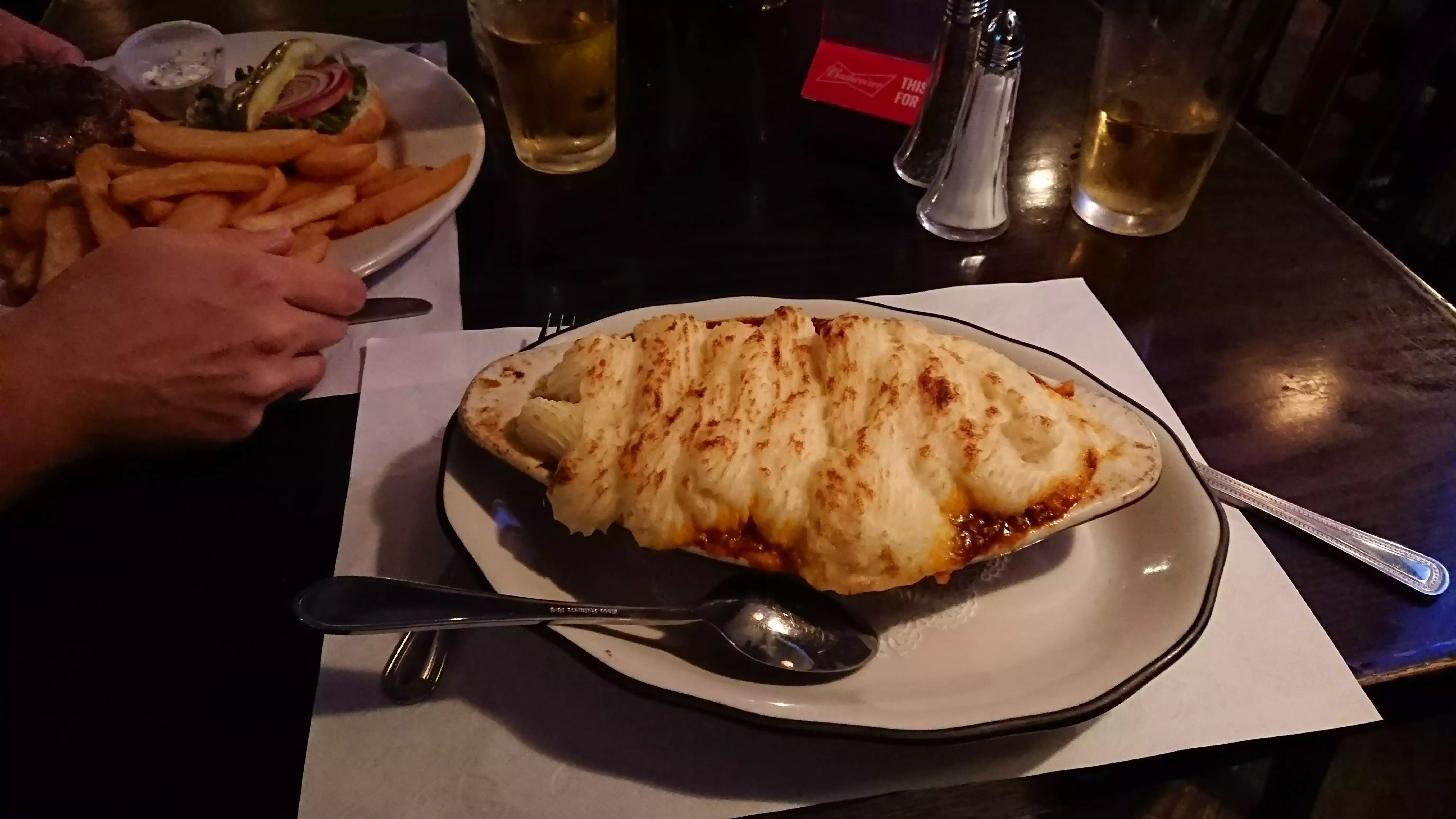 We were just walking by and happened to be a bit hungry so stopped in. Glad we did. Nice, casual Irish Pub atmosphere and good food. I always have to try the Shepherd's Pie when I come across one and this was no disappointment.