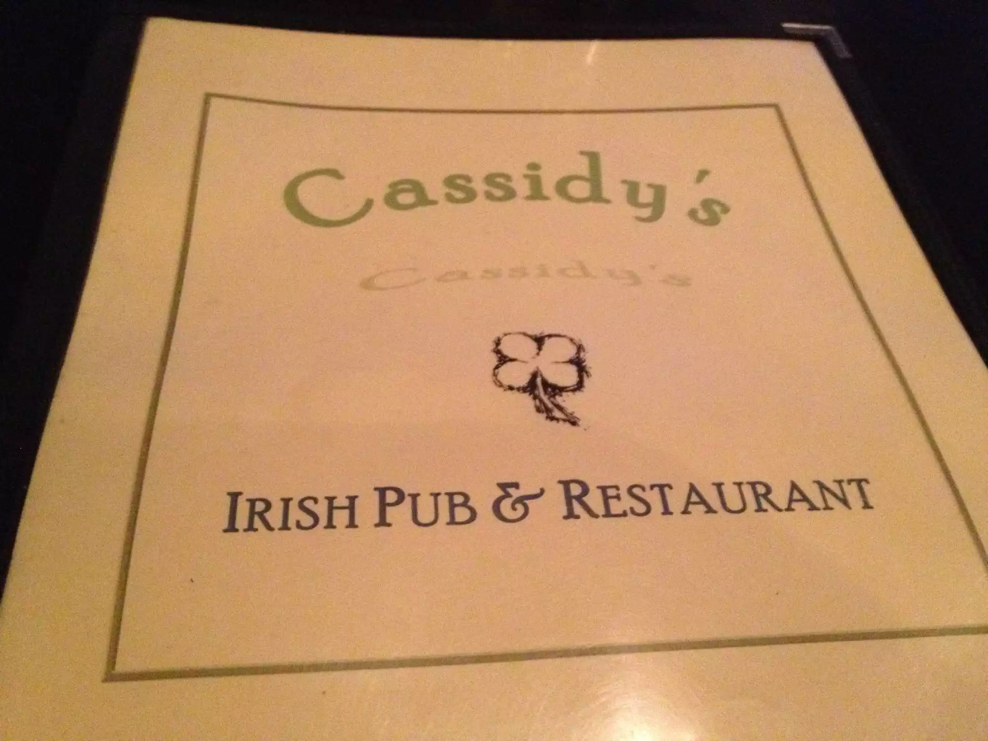 We were going to go to one of the more 'upmarket' restaurants in the area but they all needed reservations so we chanced upon Cassidy's. Great drinks, nice food, a typical pub-type menu but good quality food and great service, can't be faulted!