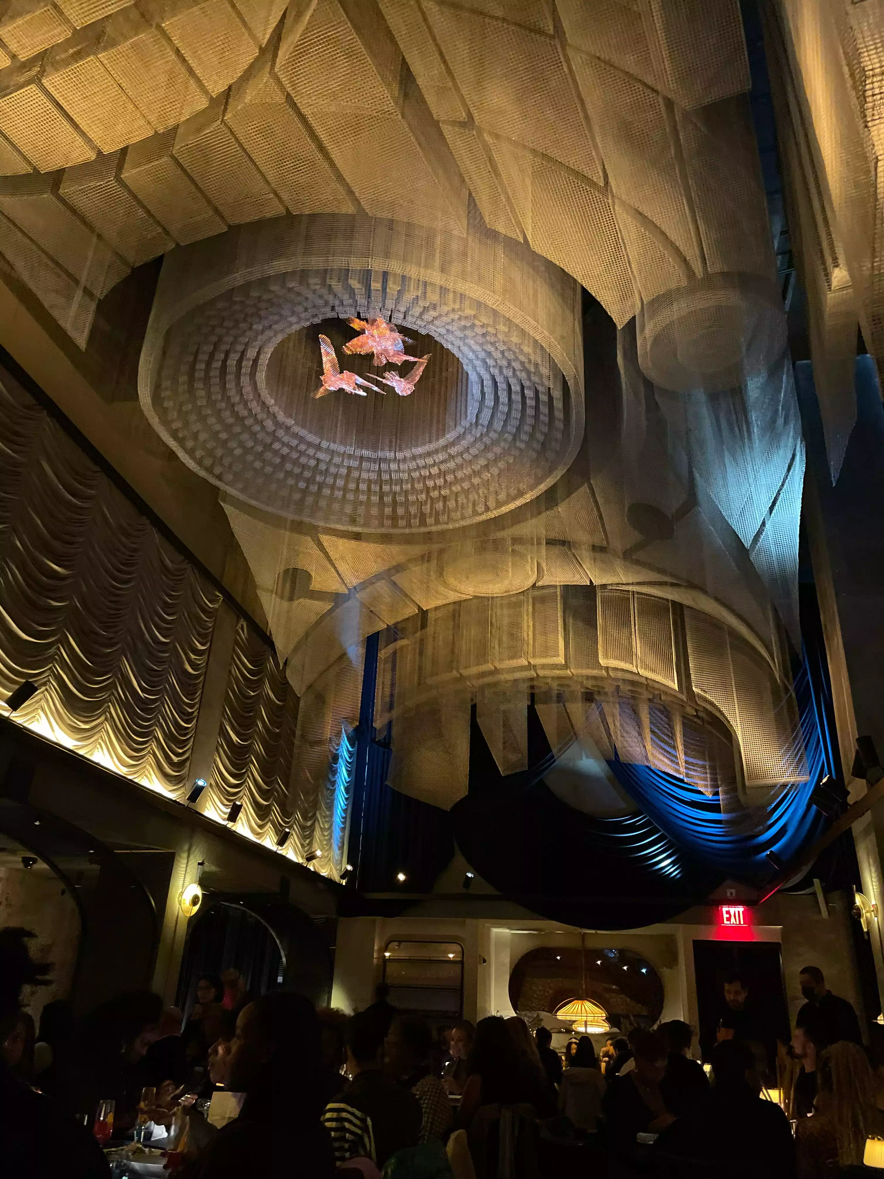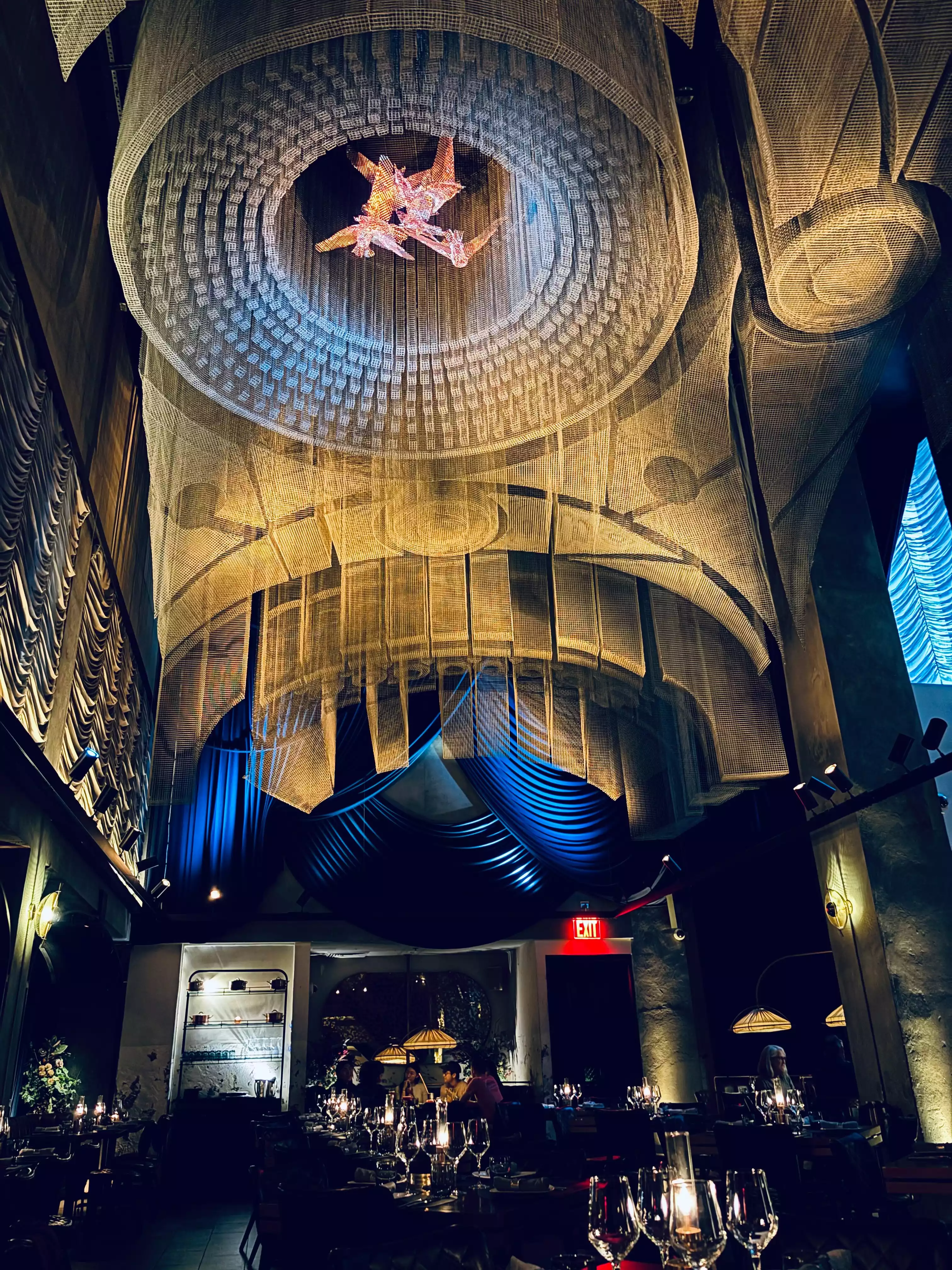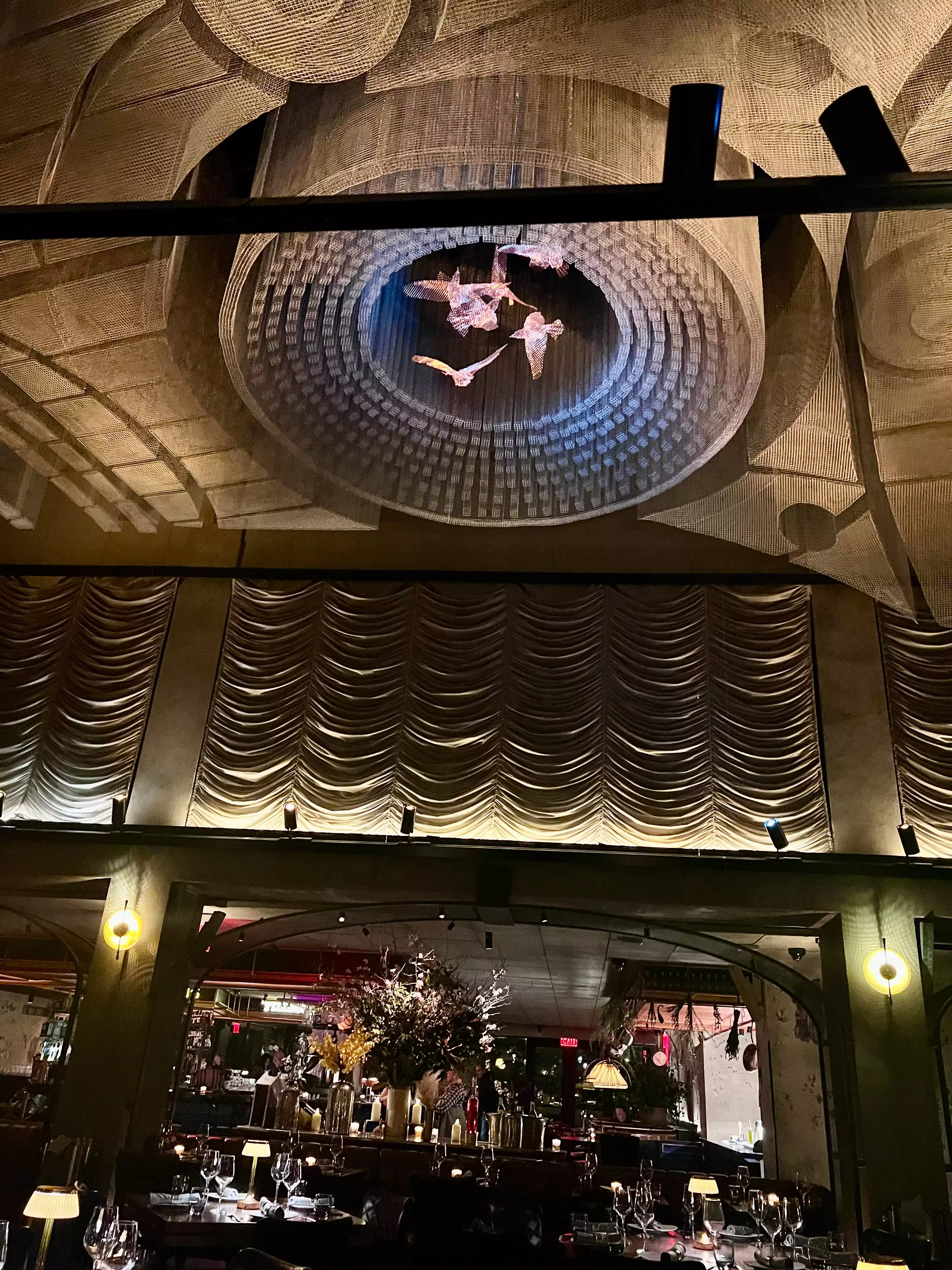 Might be one of the most beautiful restaurants in the city, but the dazzle doesn't hide the deficiencies of service and the food, which is quirky and pretentious. So, five stars for ambience (except who chose those chairs???) and two or three stars for the food. (some dishes we ordered never arrived, we had to wait to be seated despite a reservation and the order of one of us at the table was forgotten while the rest of us were served.)
