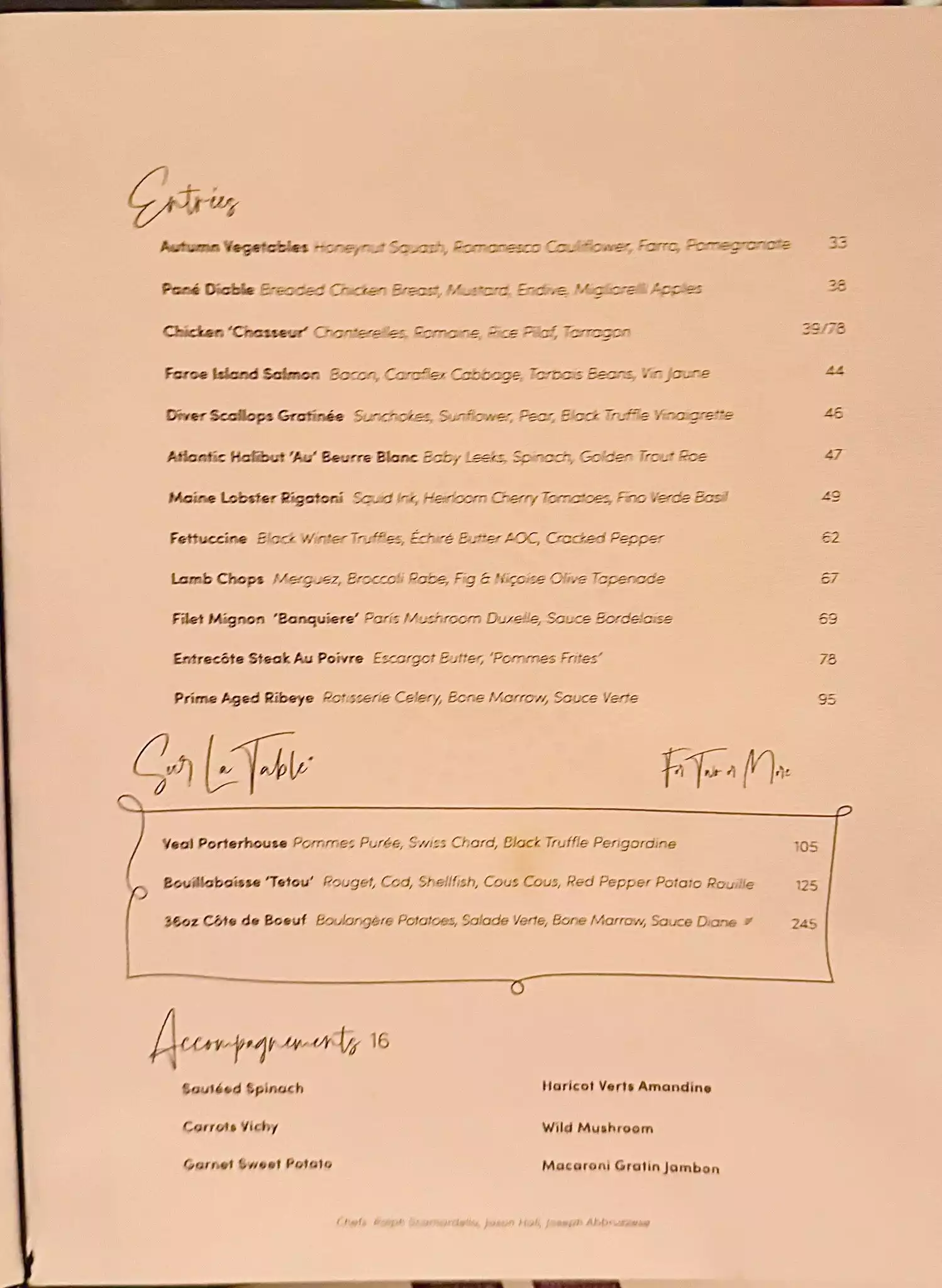 Honestly, the mere fact that I’m writing this review expresses my level of disappointment. Now as a waiter, who has over 6+ years of experience in hospitality with a degree in hospitality management and who has worked for the Fairmont hotels in the Caribbean understand mistakes do happen, but the blatant disrespect leads me to make this review. It’s my partner's birthday and I wanted to surprise him with a lovely dinner but unfortunately, that wasn’t the case after dining here. I gave it 2 stars because I was early for my reservation and the host and the bartender were spot on as I waited for my partner to arrive. The bartender was pretty knowledgeable as I expressed that I was from Barbados and the rum cocktail ingredients reminded me of what we call home a ( rum punch). Are y’all still with me? Side note, I’m not the one to write reviews, things happen and I understand because I’ve worked in the field. Now we sat down things started pretty good the octopus was an 8/10 paired with a glass of Sauvignon blanc. After that course, we’ve waited to be exact 41 mins for our mains. At this point, I’m trying not to get upset because I know how much of a big deal this was to me. The food came, I ordered the Black Sea bass and he ordered the rotisserie chicken which I should add that it was 9/10. So the food was good however our side never made the table. As I said, things do happen, sometimes waiters do forget to fire/ notify the kitchen that the table is on to its next course. But, but, but! The fact that the table next to us who order the same food that we did and who didn’t have to wait was messed up! His food came so quickly that in my mind I thought that this had to be a joke. My plans on spending over 1k turned to 200. The manager offered to take the food off but I told him that was unnecessary as the food was good and we ate it, so it was only right that we paid for it. While waiting the waiter expressed that he was sorry for the mishap the kitchen made and that the manager is going to bring us something special. That in itself took a minute because…. I guess the chocolate soufflé was gonna make the experience better. We waited!!!! At this point, I asked for the check. I paid and tipped as well! Overall because of what I’ve experienced, I’m afraid this will be my first and last time attending this restaurant.