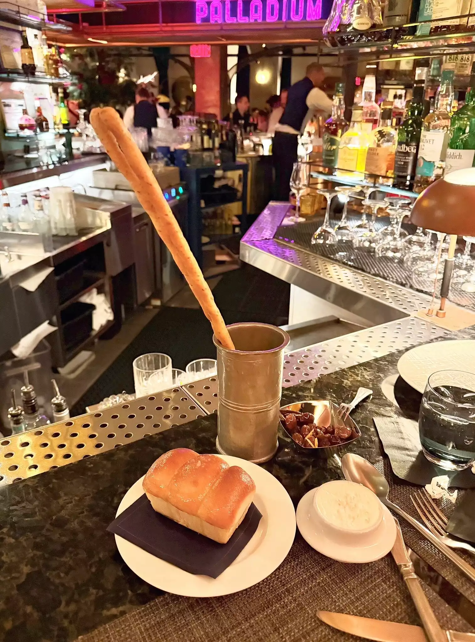 If you’re hoping to have a nice, quiet dining experience with excellent French food, don’t go to Cathédrale. We were there on a Friday evening around 9 and the atmosphere was overwhelming. If it were a bar I would call it lively and festive, but for a sit down restaurant their “high-energy haven” was unbearable. The music was much too loud and the din was exhausting. The bar area separates the dining room from the garden room (and I mean physically separates but there are no actual walls for barriers) so the noise level overflows into the dining areas. And the picture on the website of the impressive looking edifice that showcases the grand ceiling? It’s a bit misleading. It’s much smaller and significantly less impressive in person. Now to the food. I ordered a pasta dish, which is something I’d consider a low risk choice as far as the possibility of disappointment. It was basically a rigatoni with peas and pesto, very simple. While I did find the pesto sauce tasty, the meal was far less enjoyable than I’d hoped because both the pasta and the peas were underdone. Not so undercooked that I would send it back, but enough so the peas sat in my stomach like little lead balls after I ate. The service was mediocre at best. The young waiter seemed lazy, barely checking on us and disappearing when we were finished and trying to get the check. On the plus side, the complimentary bread sticks, olives, and mini bread loaf were amazingly tasty.