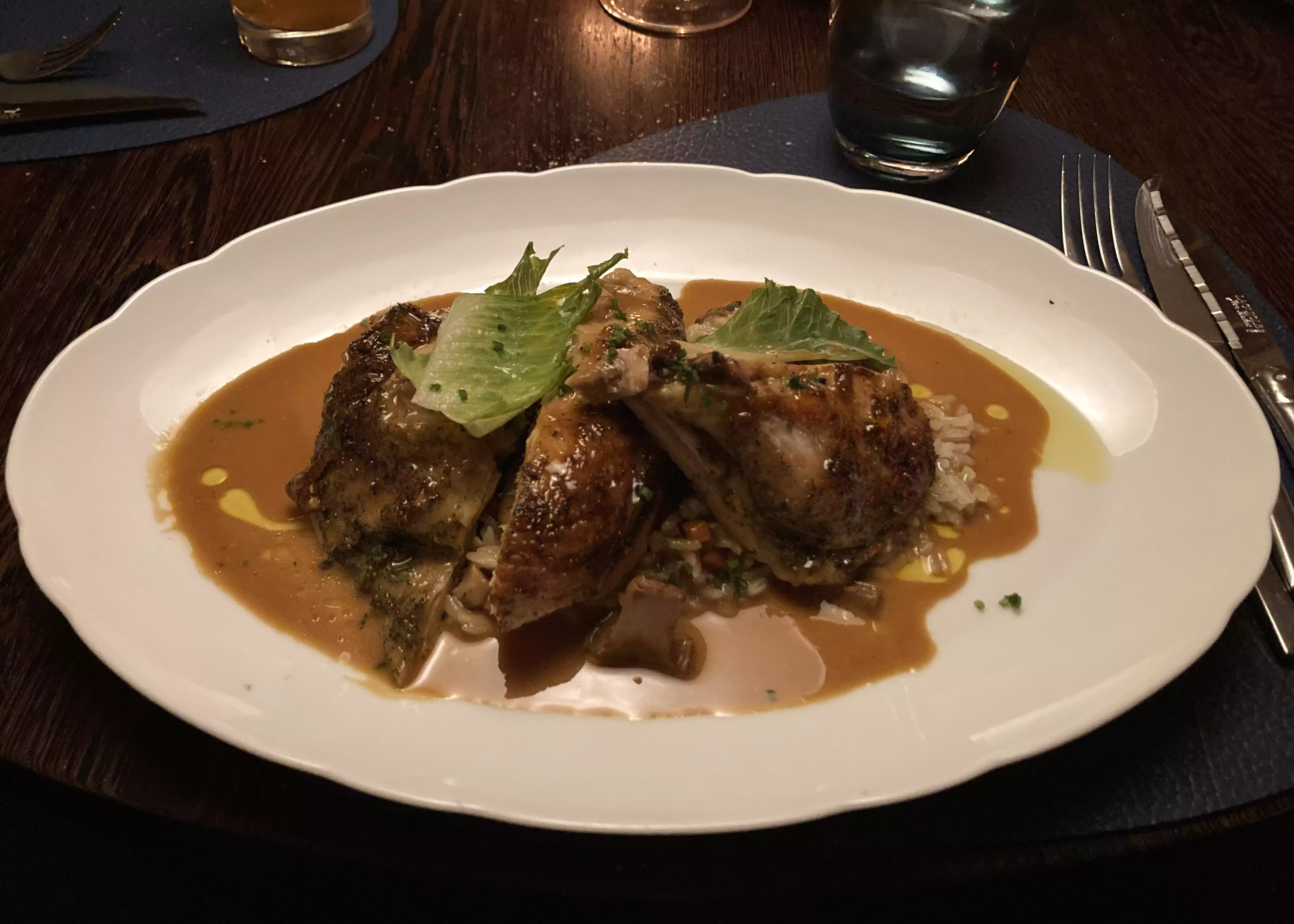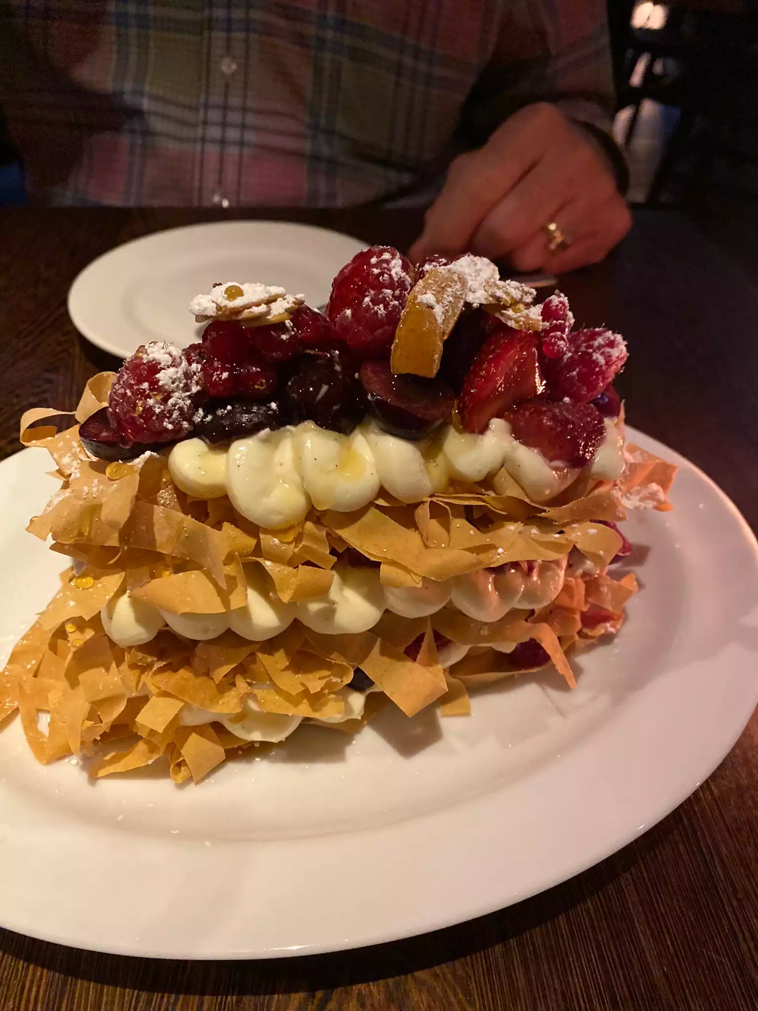 We wound up spending two unplanned nights in NYC after our flight home was canceled. We were tired and pretty stressed out and so we opted for the restaurant in the hotel. It was a very welcome surprise. It’s a beautiful restaurant and the service was excellent. We both had chicken, which was outstanding and a Napoleon made from phyllo dough. It included fruit and yogurt and was incredibly light and delicious. We had a great evening.