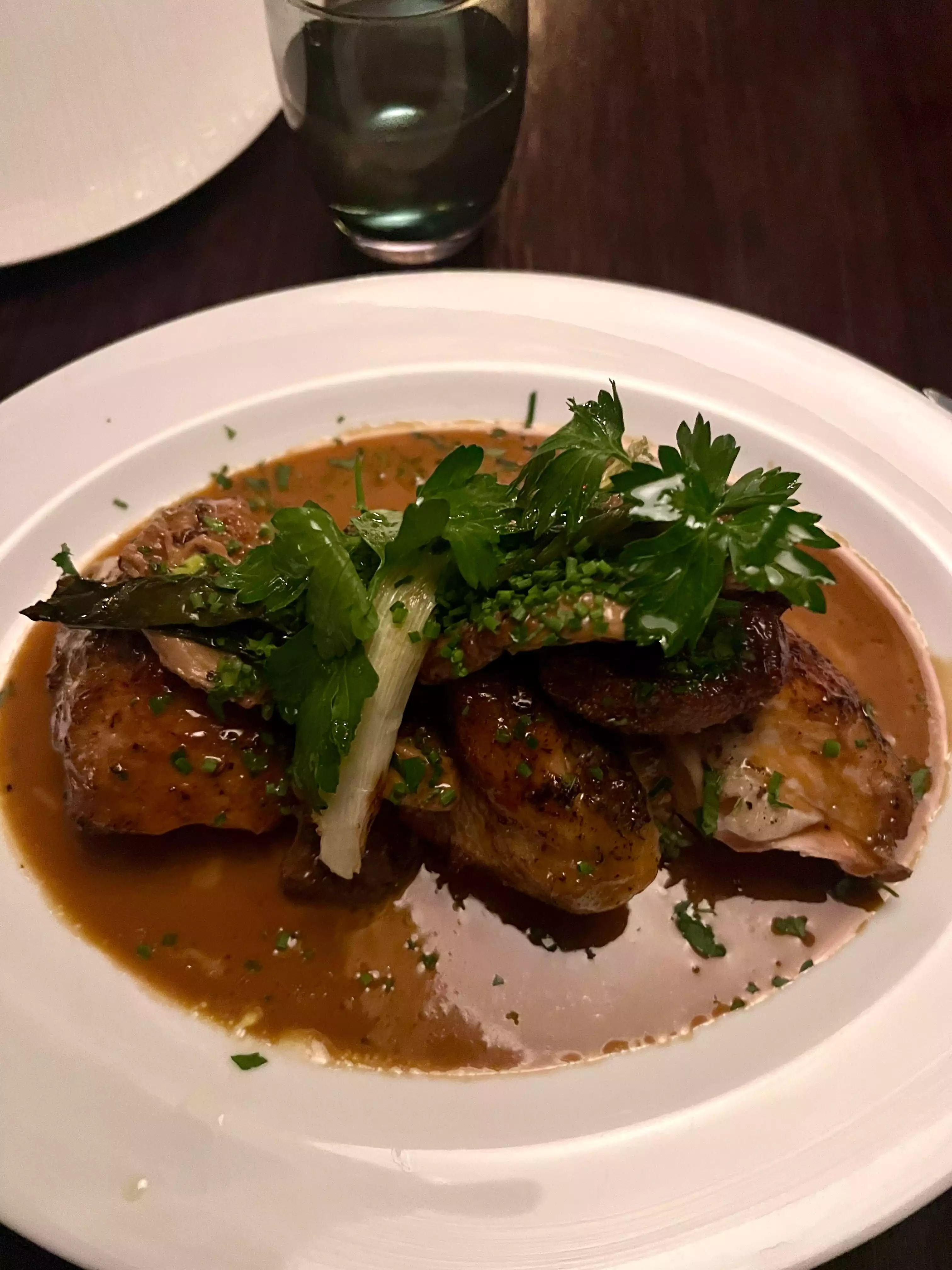 Great that we were given a table in the dining room even though we only had a bar reservation. The venue is fantastic! Cocktails were great. Appetizer was ok but when my friends were finished they took their plates (I know it is normal in the us) and seconds after they brought, not only theirs, but also my main dish (before i had finished my appetizer)… when I said I wanted to finish my appetizer they responded “we will see what we can do”. In the main (scallops with sunchokes) there was sand… (but taste was good) I would go back for drinks but not for dinner