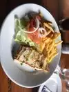 Try Salmon sandwich come with really delicious french fries. priced good I had been there several times in a 10 year spam and I always got what I expected for..