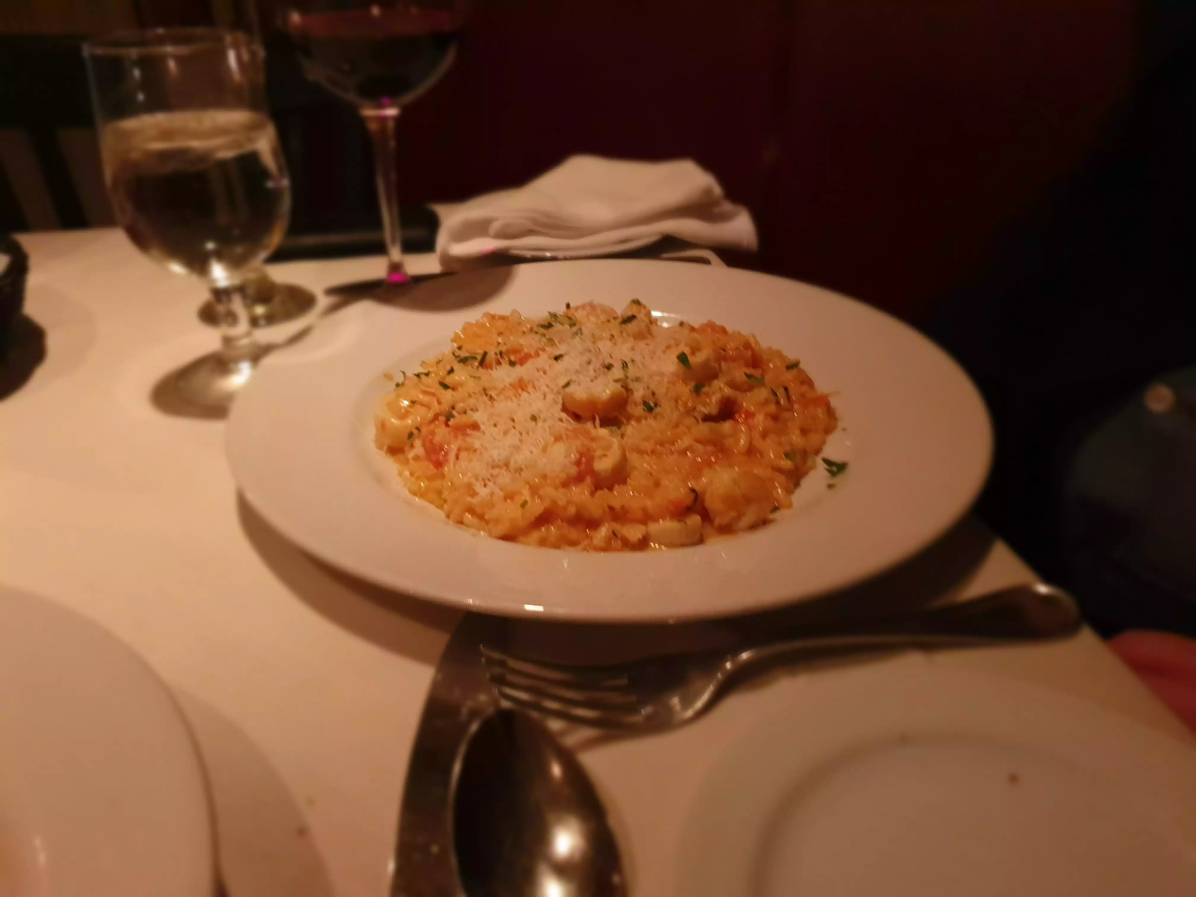 Cellini was directly across from our hotel. We decided to have dinner one night for the convience. We had to ask twice for water & for a wine list. After getting our menu, and ordering, we had to ask for bread. Our food came out and it was good, but the service made everything a bit disappointing. A couple seated next to us got up and left because of the poor service. I ordered the Risotto with shrimp and lobster, it was tasty! My husbands spaghetti was ok, Olive Garden is better.