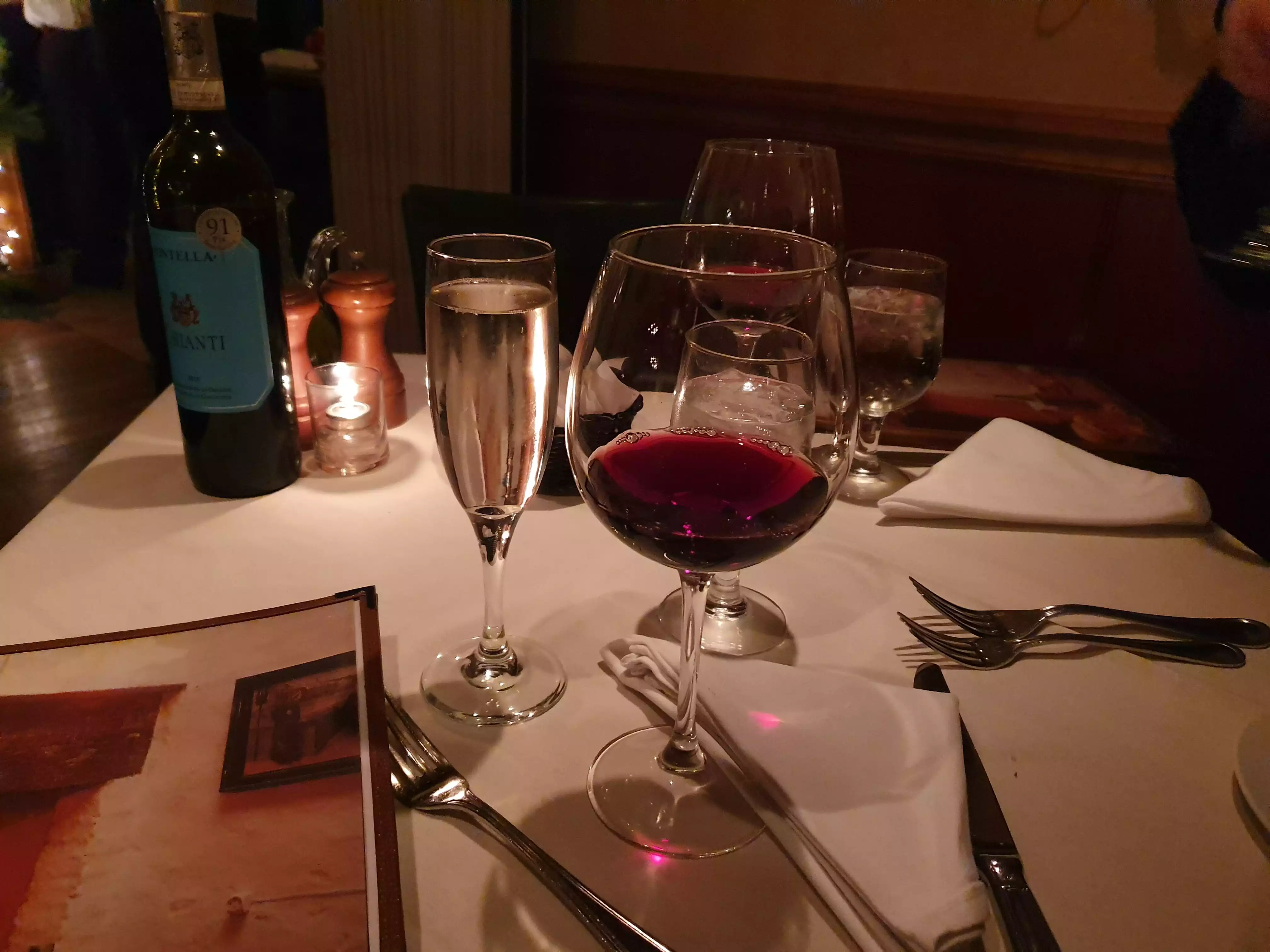 I went with a group of 10 people. Unfortunately, the table setting was very tight so not sure I would recommend it for groups. That being said, the food was great (I had veal and spinach ravioli myself) and the Chianti was very nice.