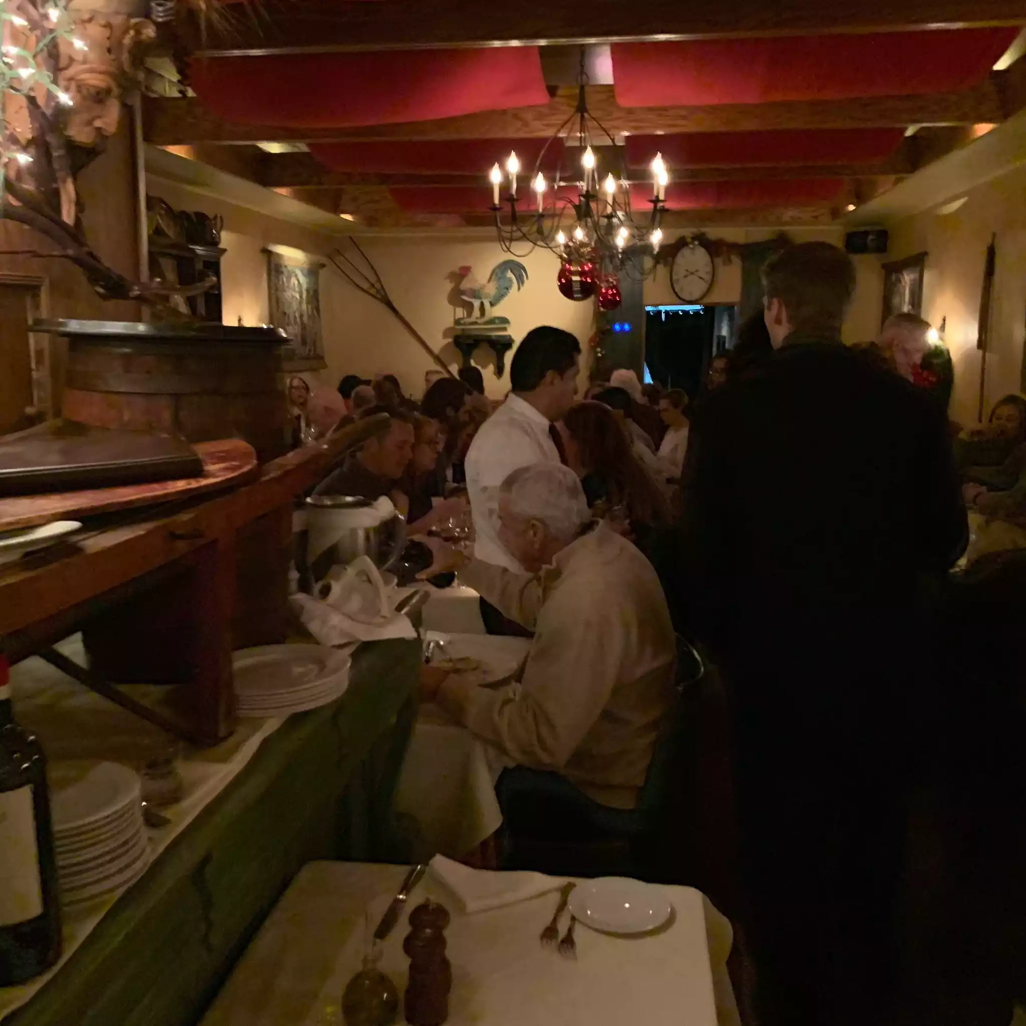 Four of us shared a business dinner here and all of us walked away well fed, relaxed and ready for tomorrow. The veal dishes were flavorful and more than ample without being obscenely large. Theses dishes were served with mashed potatoes, and I would have preferred a small plate of pasta. The one pasta dish enjoyed st our table was a good size and complemented by a very good sauce. The wine list had a lot of range in price, and we enjoyed a very good bottle of Chianti Classico. Noise levels were moderated by draped fabric on the ceiling so that conversation was pretty easy. The restaurant had many empty tables when we arrived for our 18:30 reservation on a Monday night, but it was mostly full by 19:00.