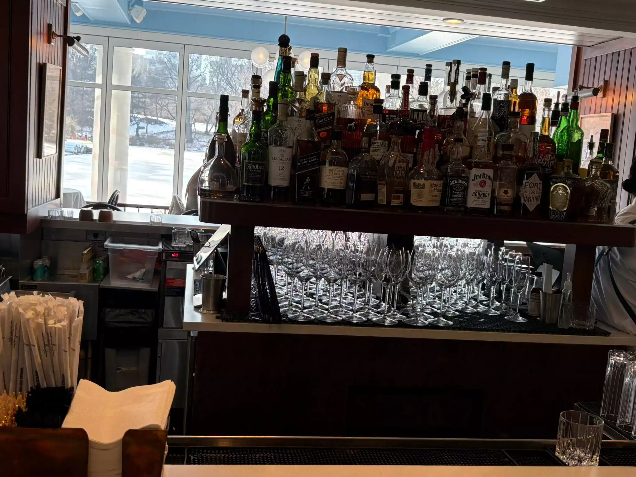 Fantastic location, lovely atmosphere, great pianist, lovely staff . I felt like we were in a movie set . So cold outside with lake frozen we came in and sat by the fire , it was heaven. I clumsily knocked my glass and cut my finger, the lovely girl working at the bar then got me a plaster and a new glass . I then went to sit with my wife who had spilled her wine . I told the girl and asked if could get another round in , she topped my wife’s glass up with out hesitating. Amazing service and what a fantastic setting.I think her name was Aleshia or similar to that . Any way she was totally professional at her job . I have recommended the boat house to my friends who are visiting New York shortly. Thank you for a lovely afternoon.