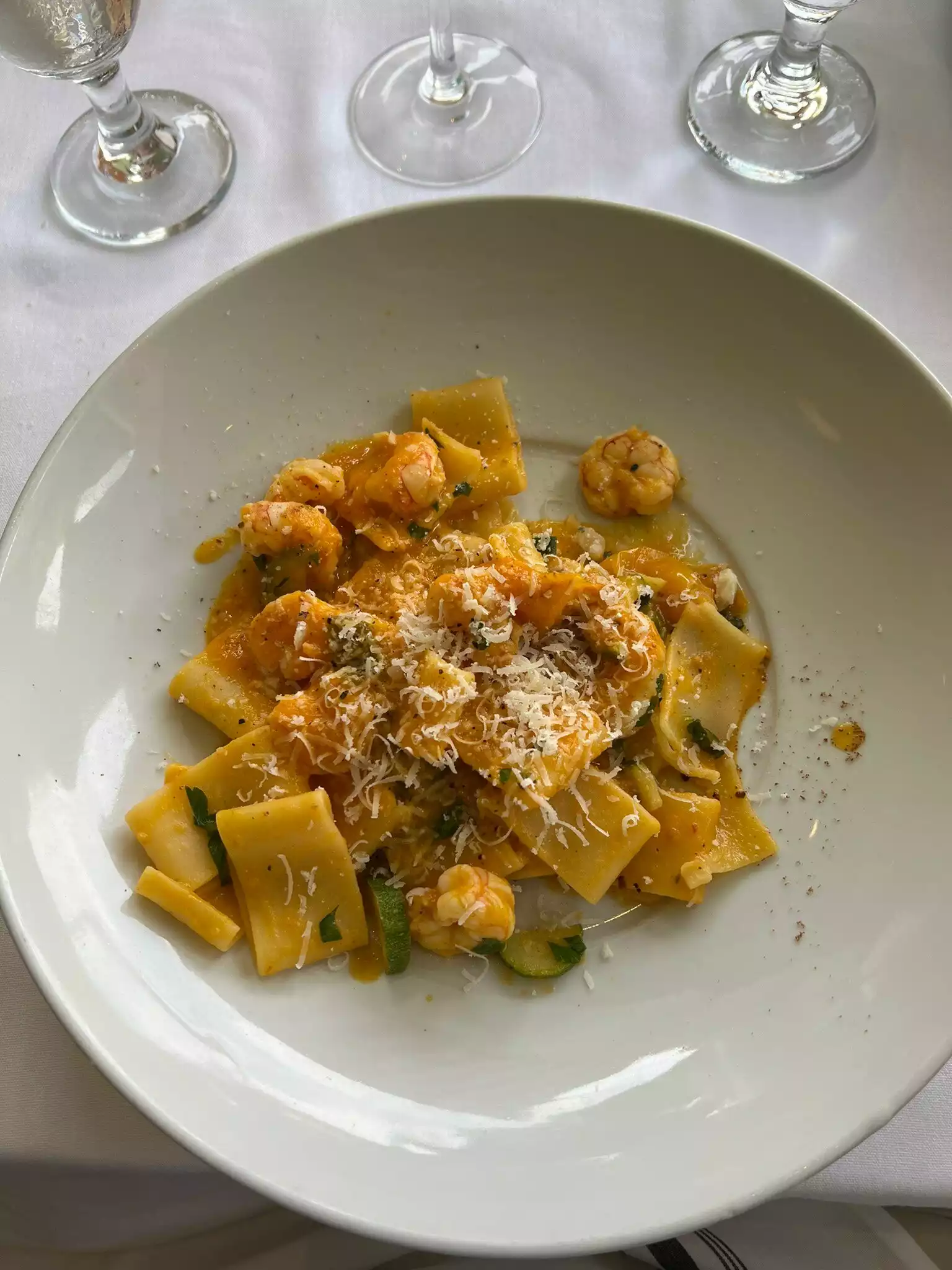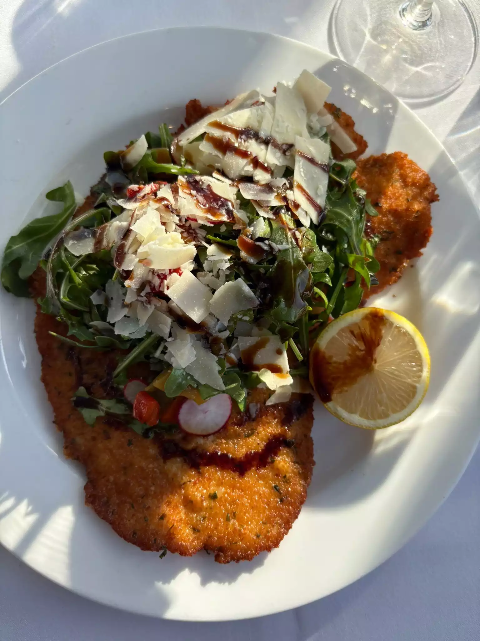 Daughter had the Lobster Spaghetti, I had the Roasted Chicken, and my wife had the Ricotta Ravioli. We also had a Caprese salad and calamari starters. Everything was fantastic - though the Caprese was a bit bland for my taste. Some more salt would've been nice. The views were great, we watched an independent movie/TV show being filmed on the water. That was fun :)