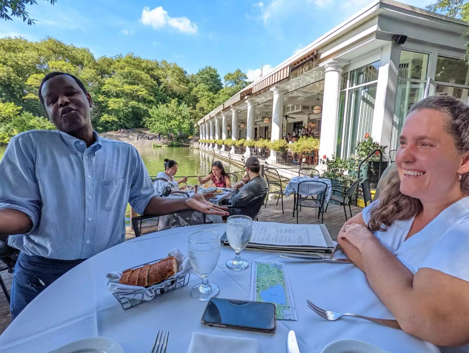 Booked in advance as soon as reservations opened 3 weeks out. Glad we did as on a Summer Friday at 1pm, it was super busy. Our waiter Clay was super attentive and really looked after us. The food and drinks were delicious and Clay made fuss of me as it was my 50th birthday. Loved the views of the boating lake and the location in Central Park.