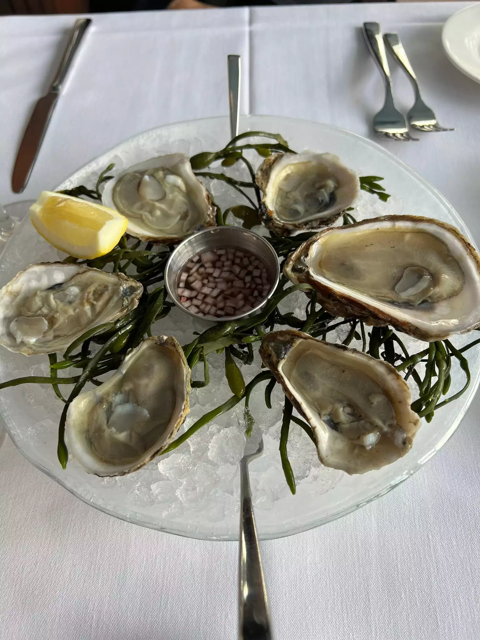 Beautiful view. We sat at a table right by lake. Hostess and wait staff were wonderful. Food disappointing. First the bar does not stock dark rum so we couldn’t get hurricanes (aka dark and stormies). This is NYC and I expected better. I drank ginger beer no alcohol. Complimentary Relish tray is sweet gesture. We ordered stuffed mushrooms and oysters Rockefeller to start. They were ok. We shared an order of spaghetti with lobster. Described as house made pasta, the pasta was very dry, the lobster was fine. For these prices you are paying for the view, not food of high quality.
