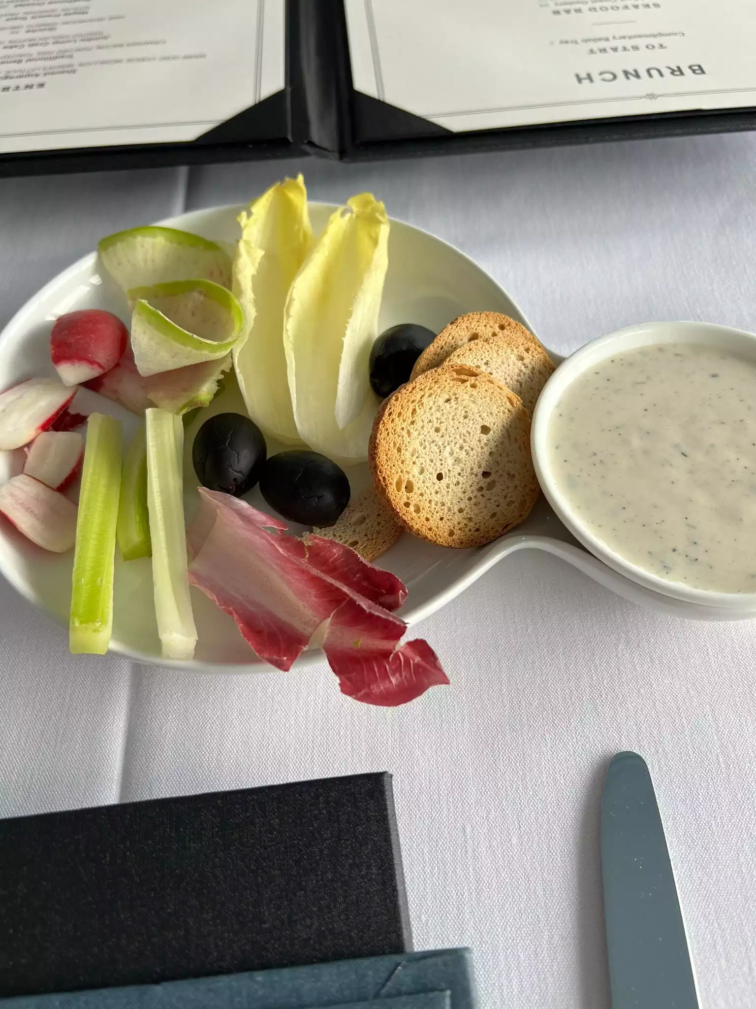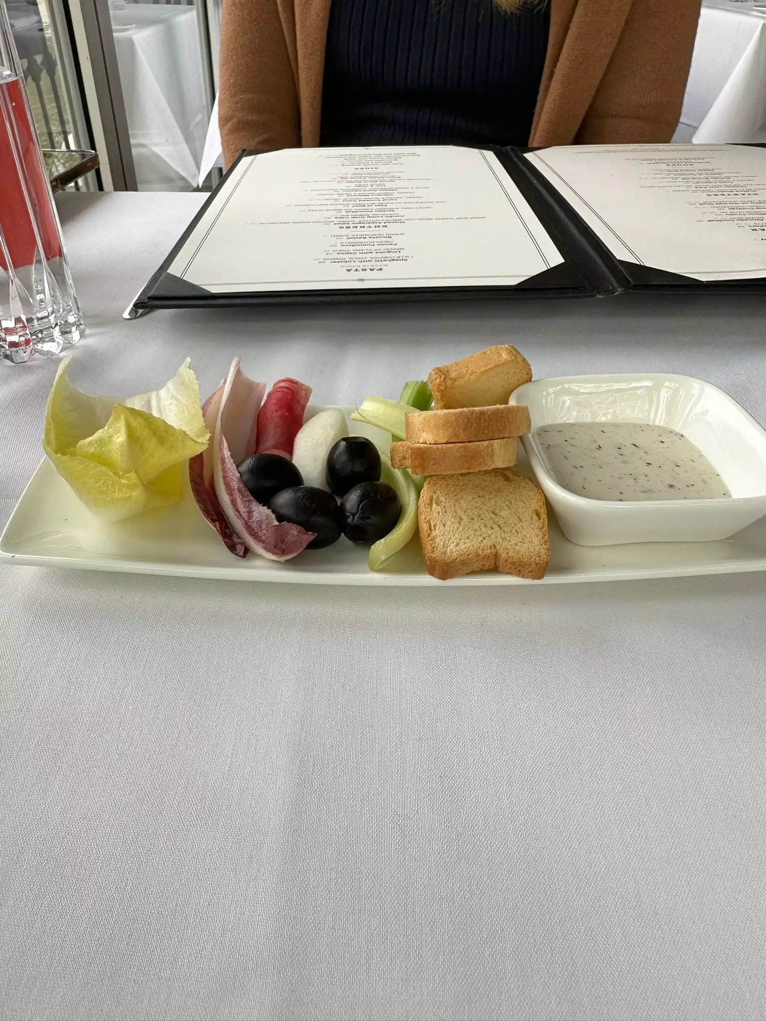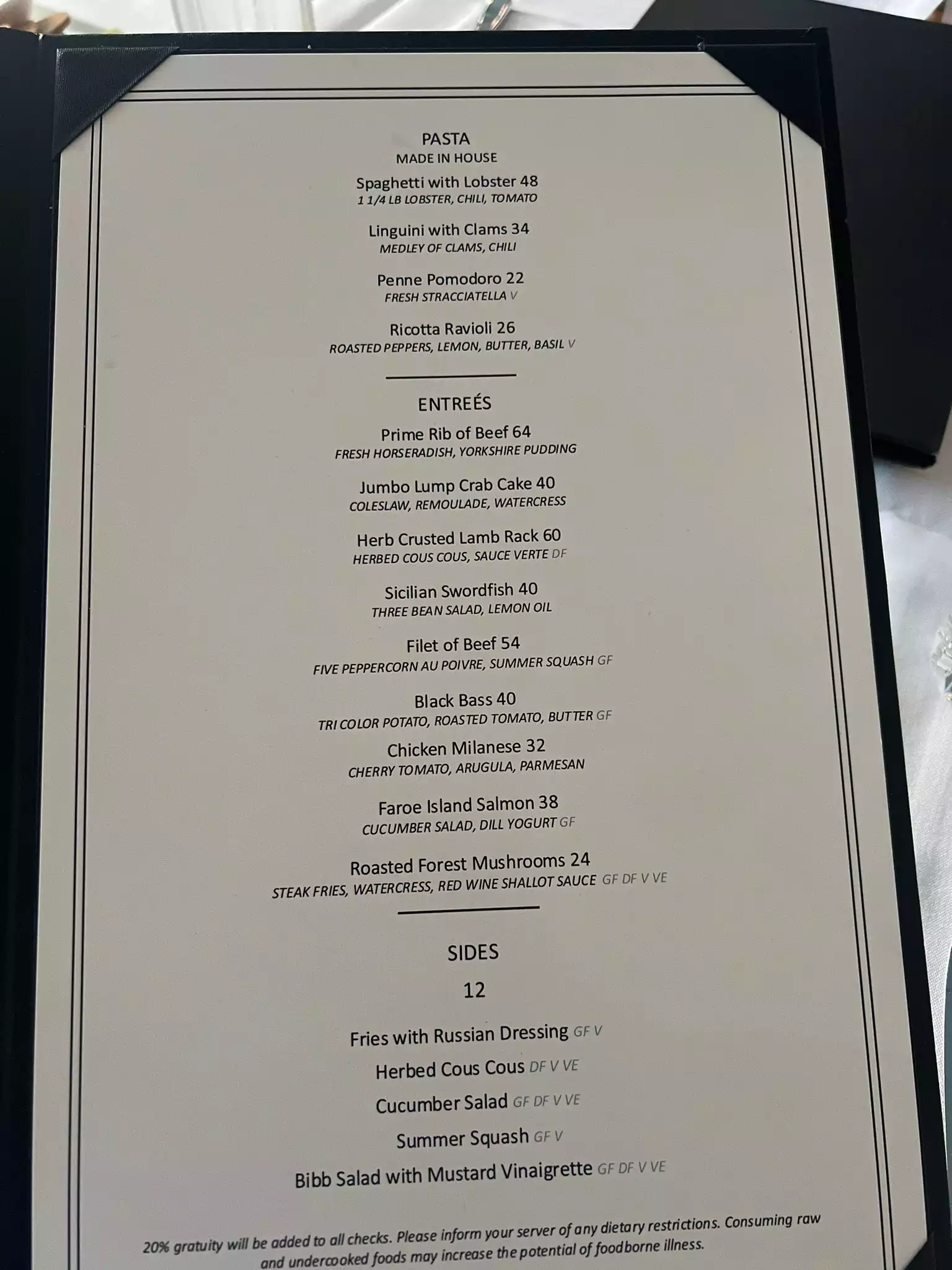 Italian menu which did not have a lot in it.The assortment of bread was excellent but would have preferred if they were warmed.